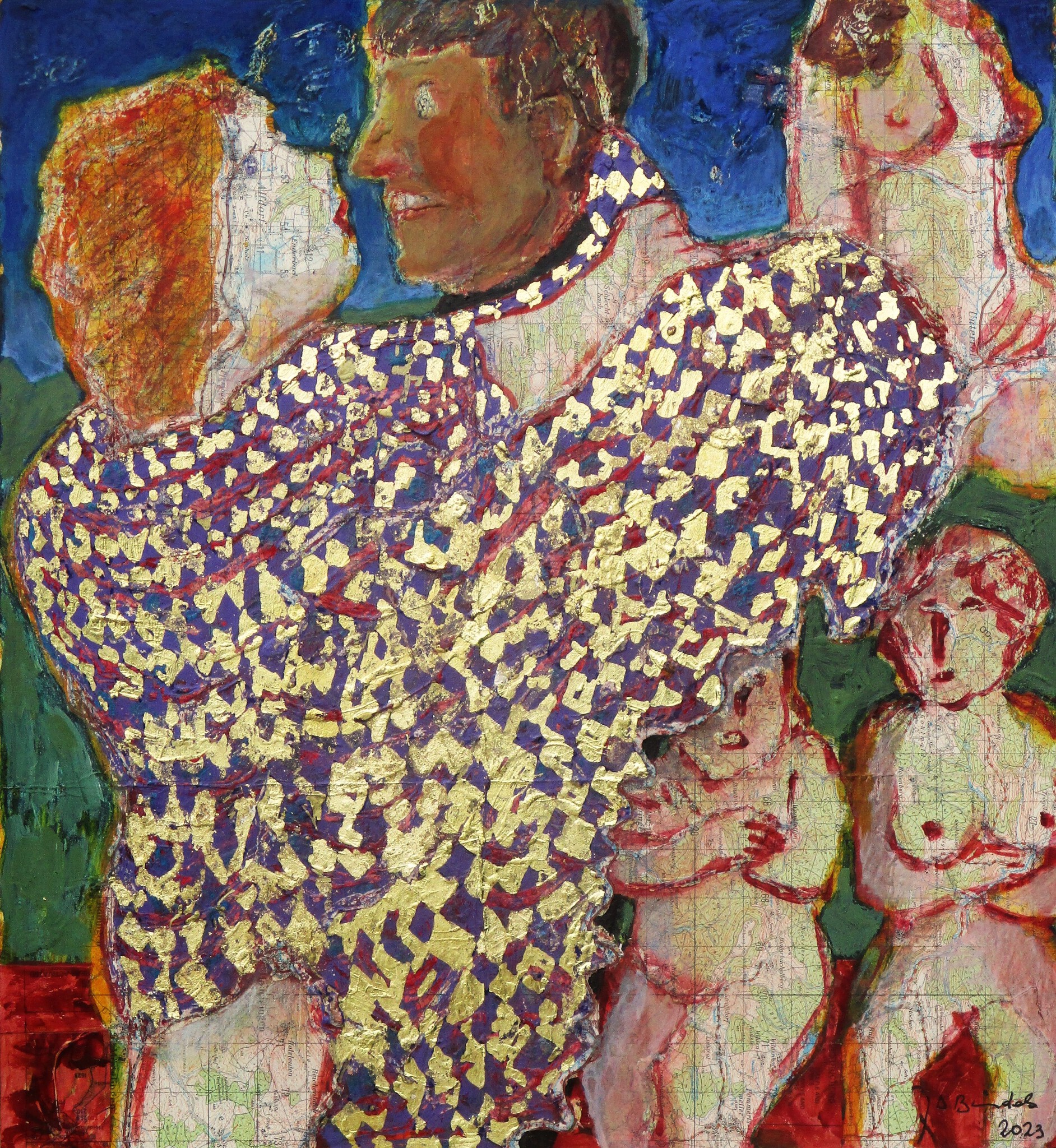 Gemengde techniek op landkaart ( met bladgoud )