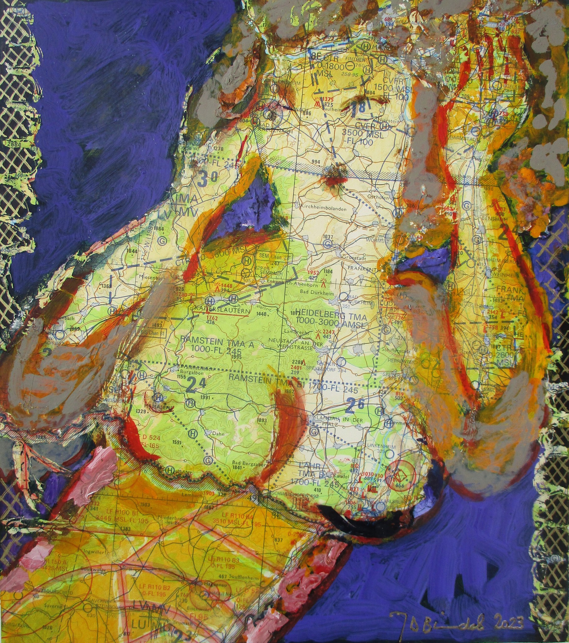 Uitgangspunt is de landkaart. Luchtfoto als het ware van de aarde waar het leven zich afspeelt in al zijn verscheidenheid. Grond om te bewerken. Een welhaast onuitputtelijke inspiratiebron.