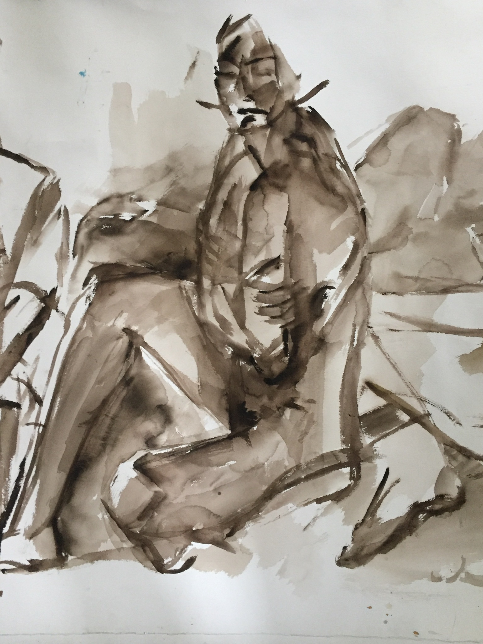 Abstrahering van model. Inkt en penseel.