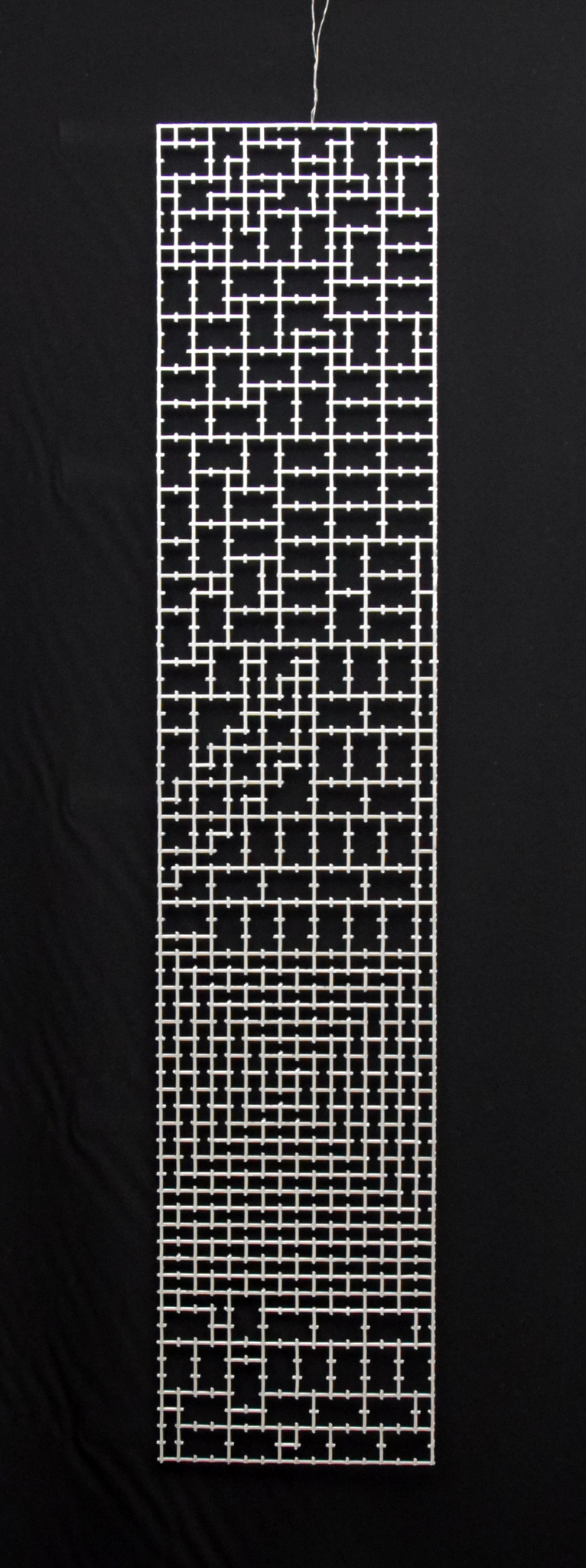 Uitvoering: Zilverkleurig aluminium rasterplaat op roodsatijn paneel met witte baklijst