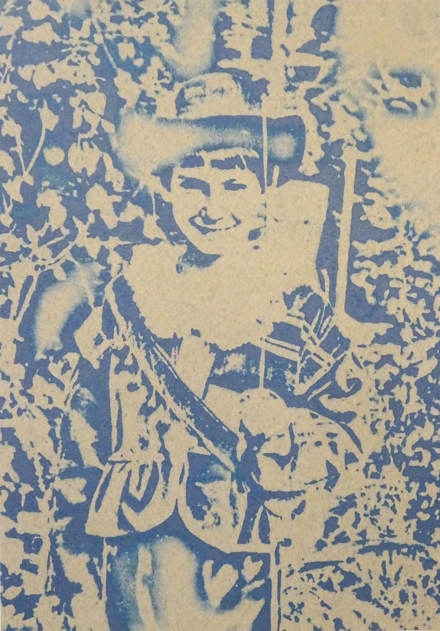 Het portret is geïnspireerd op de blauwdrukken van Anna Atkins (1799 – 1871). Anna Atkins was een Britse botanist en fotografe en een pionier op het gebied van de cyanotype. Het portret, mijn jongste zoon, is gemaakt voor Druk en Proef2, georganiseerd door stichting Grafein. Het portret is aangekocht door stichting Grafein en stond afgebeeld op de voorzijde van de catalogus.