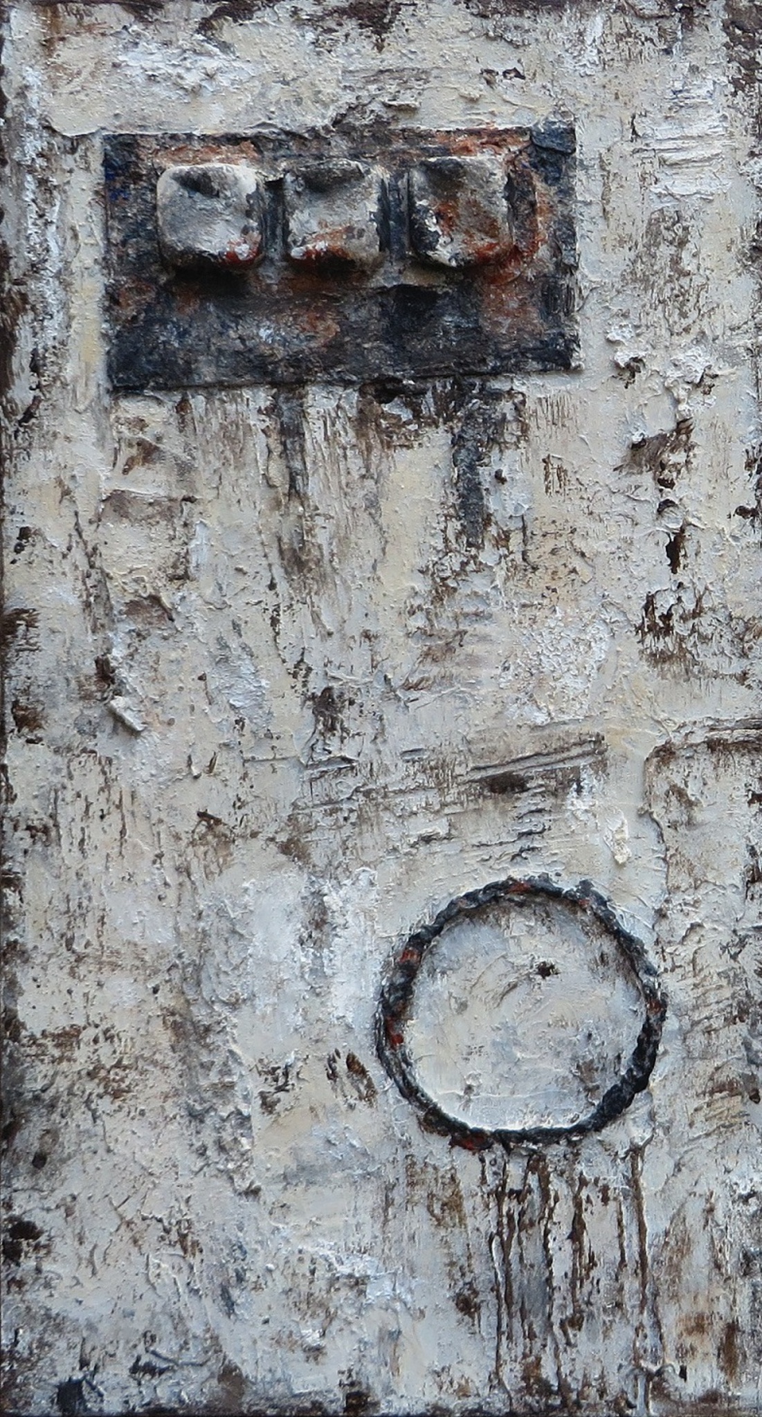 Abstract Grijs Bruin Mixed Media Acrylverf Ring Muur Verweerd Materiekunst