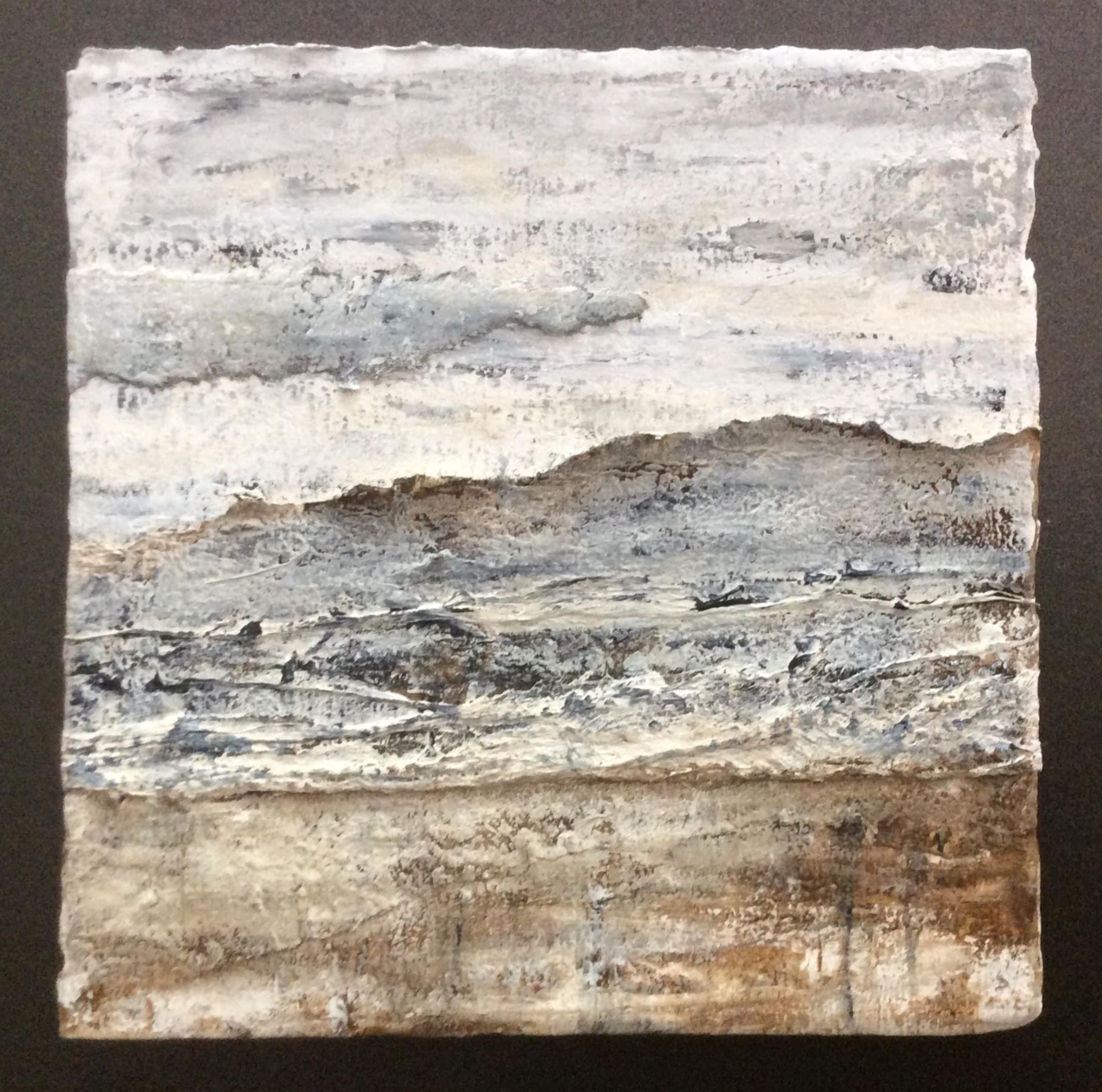 Impressie van een reis naar IJsland in acryl en gebruik gemaakt van diverse materialen.