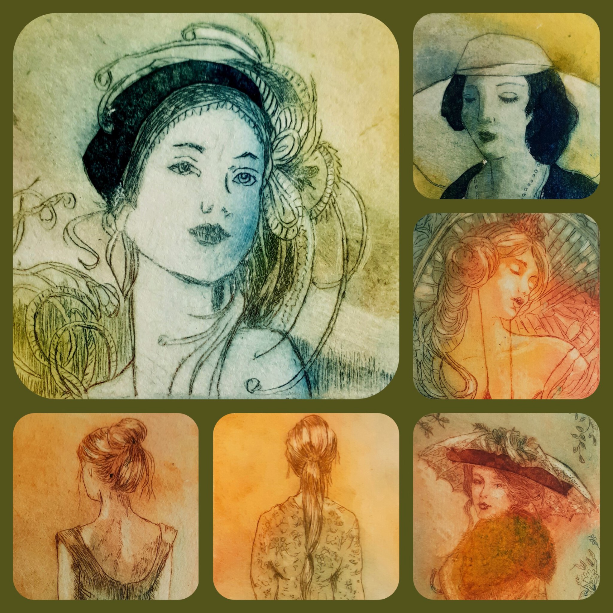 Kleine etsjes (6 cm - 8 cm), gemaakt met tetrabrick. Droge naald