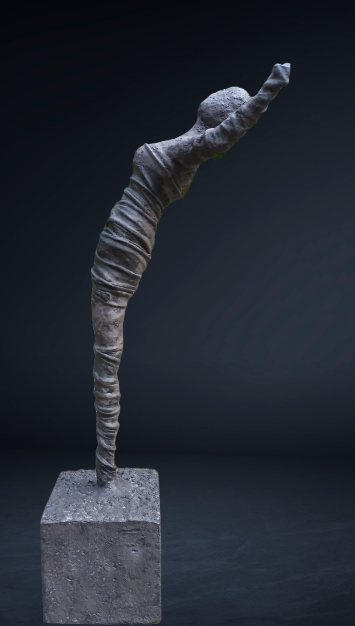 Durf jezelf over te geven en los te laten... Beeld gemaakt van textiel en paverpol, afgewerkt met paverpol, artstone en paversand. Sokkel van gegoten beton.