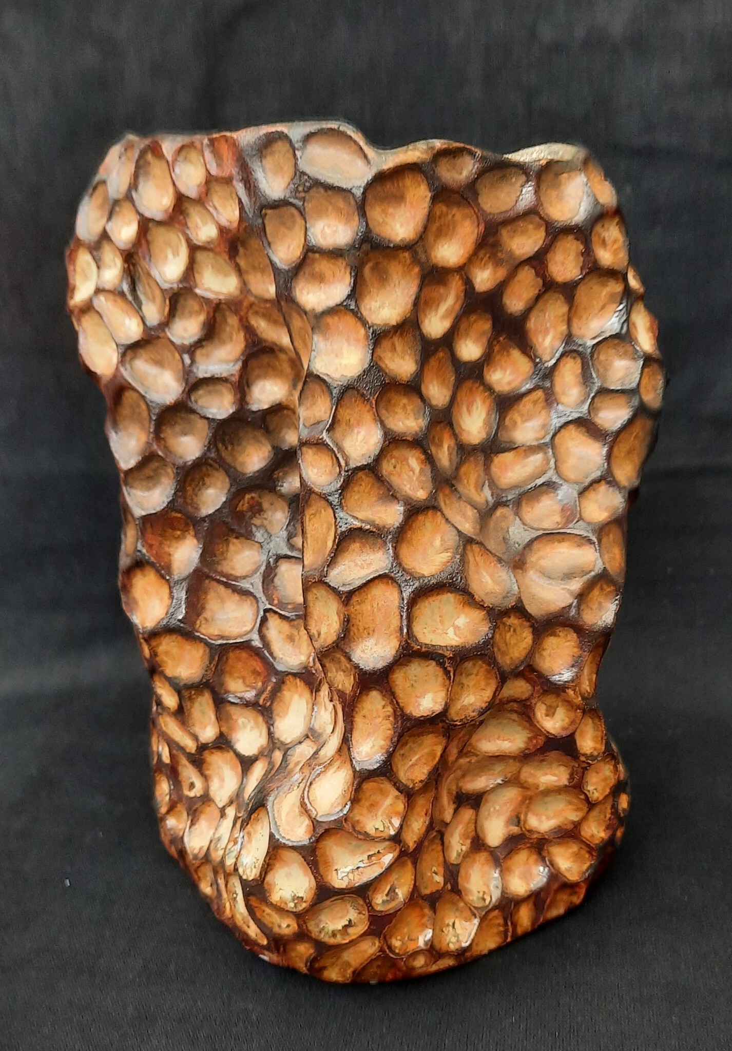 Steengoed, geglazuurd Buitenkant bruintinten, binnenkant blauw