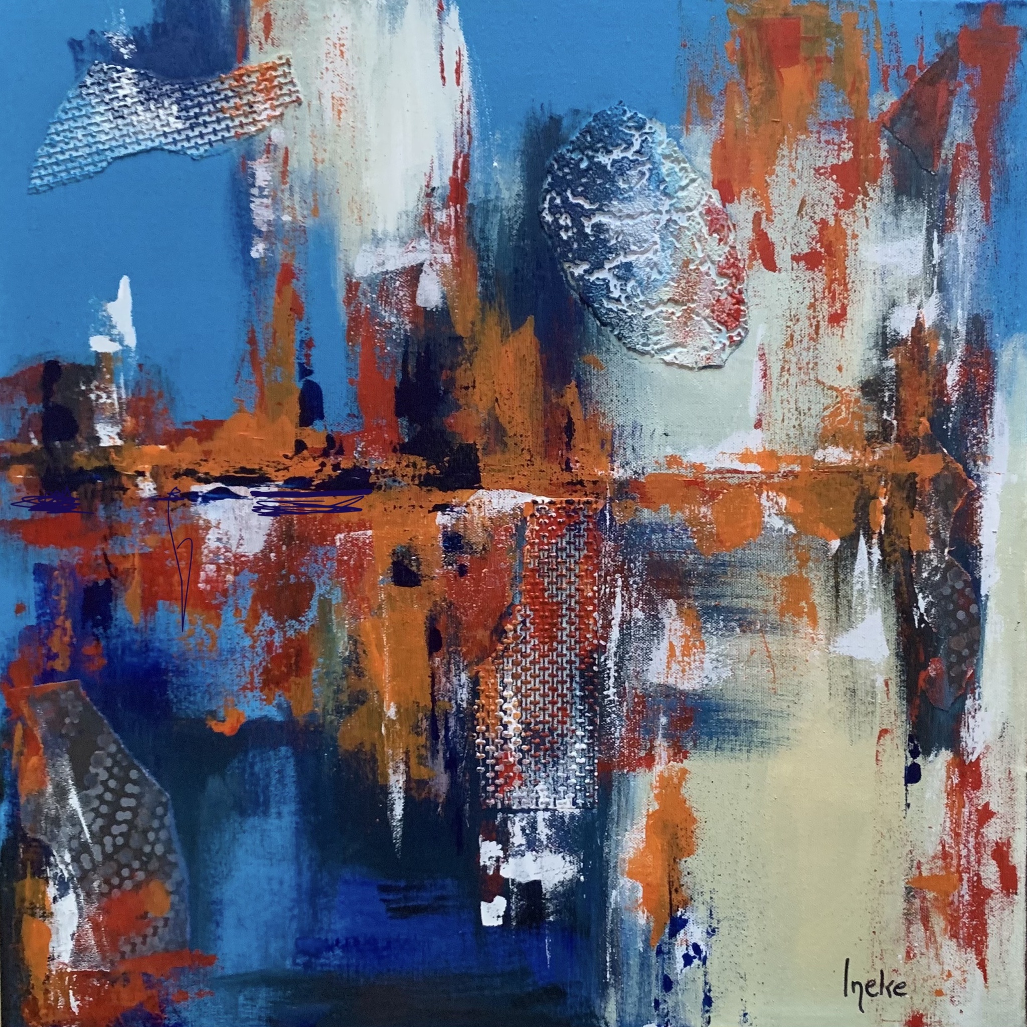 Ik schilder abstract of semi-abstract, experimenterend met kleuren, lagen en imperfectie. Kleuren drukken emotie uit en zijn heel persoonlijk. Acryl of mixed-media.