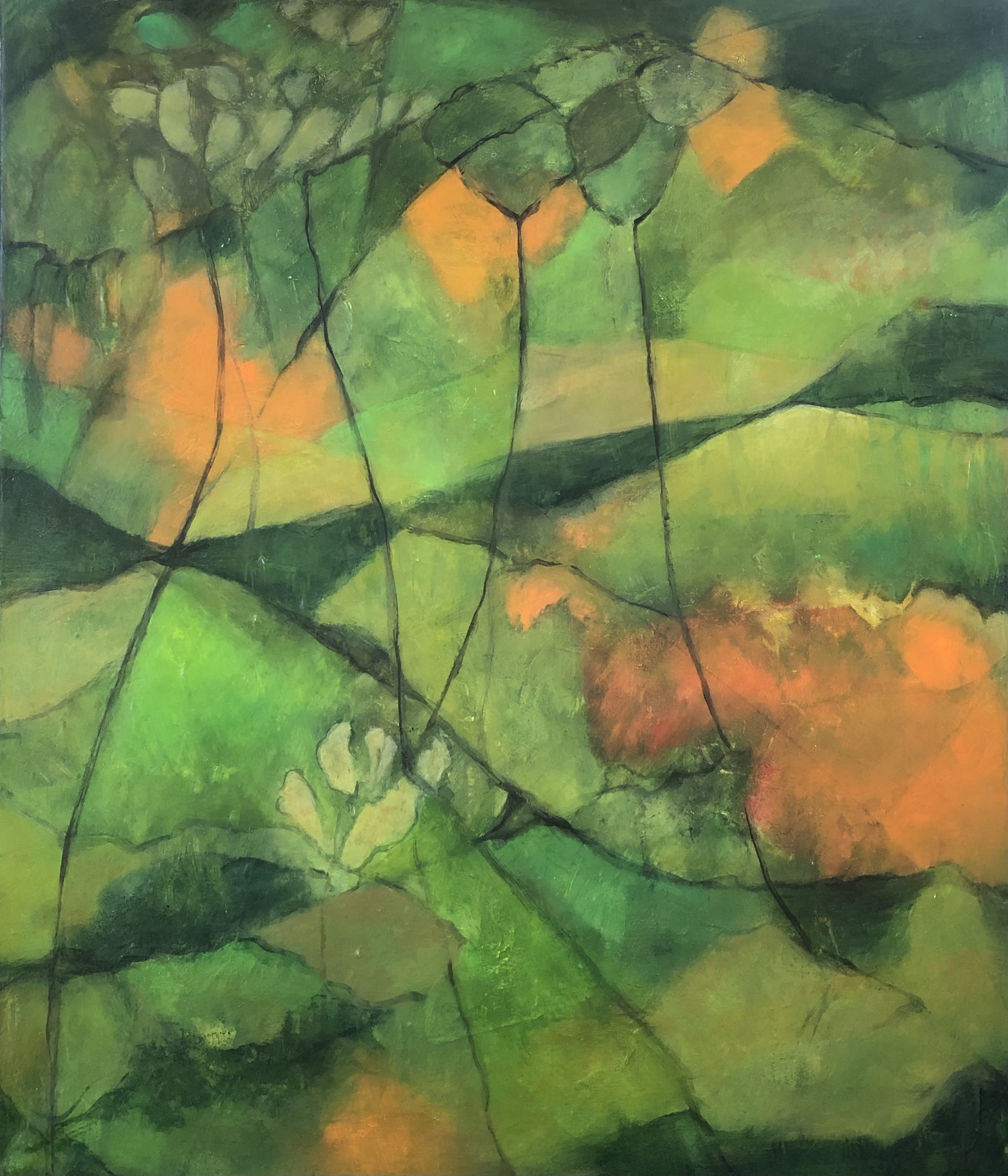 In mijn werk maak ik gebruik van gemengde technieken en werk ik graag in lagen, al dan niet gebruikmakend van textuur. Ik houd ervan om onderlagen weer zichtbaar te maken en weer nieuwe lagen toe te voegen. Al doende groeit het beeld onder mij handen, letterlijk, omdat ik graag met mijn handen werk om te bereiken wat ik wil.