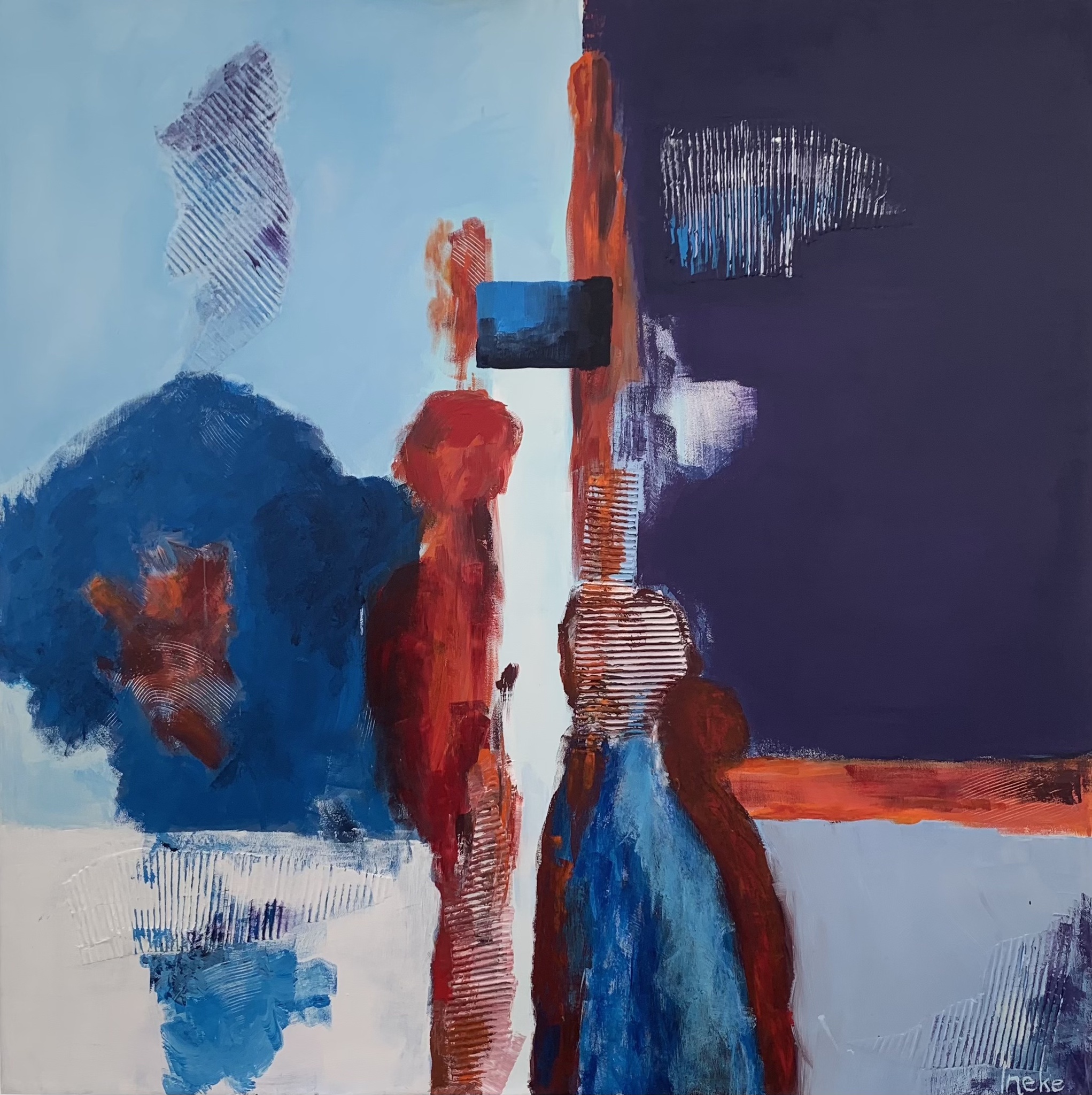 Wit Abstract Mensen Rood Blauw Figuratie Mixed Media Vormen Colourfield 2023 Buiten Tuin