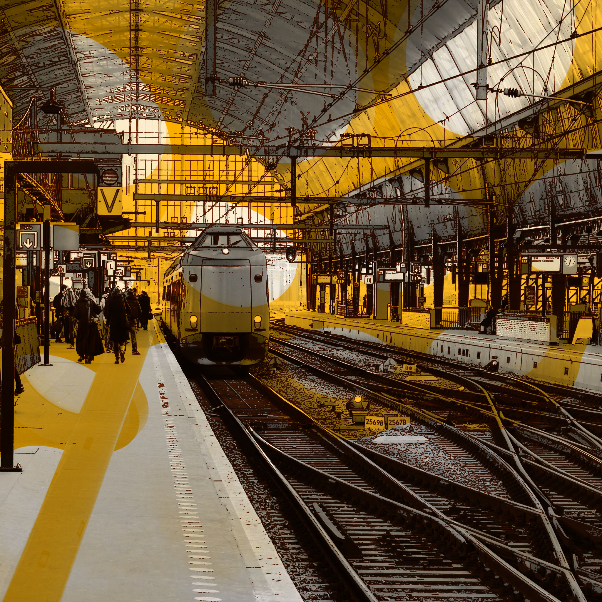 'At the central station 3' * te koop digitale art-print, 50 x 50 cm, prijs: € 365,- (inclusief lijst, of op dibond) (diverse formaten zijn mogelijk, naar uw wens - de prijs variëert dan mee)