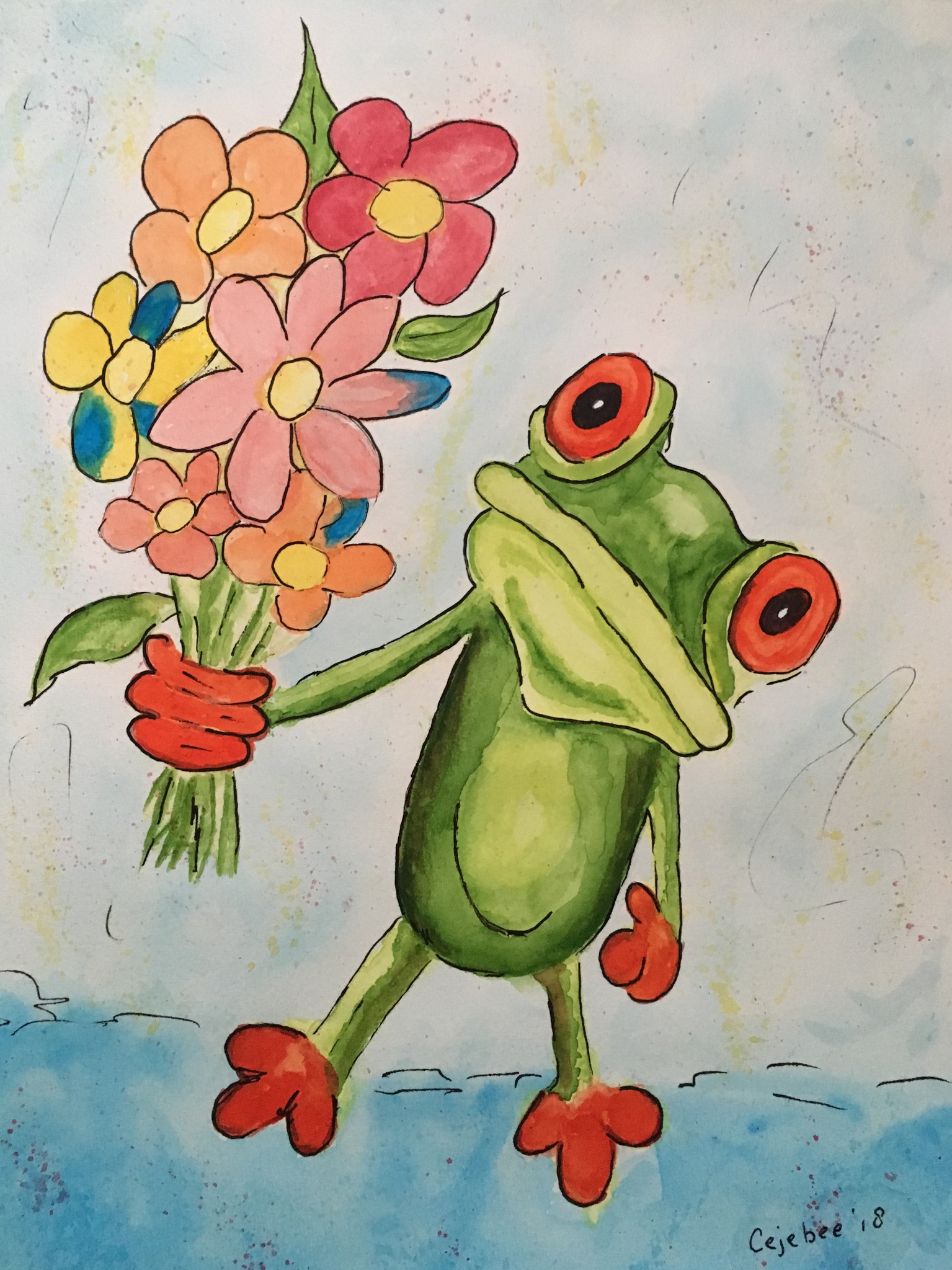 Mooie kikker met ruiker