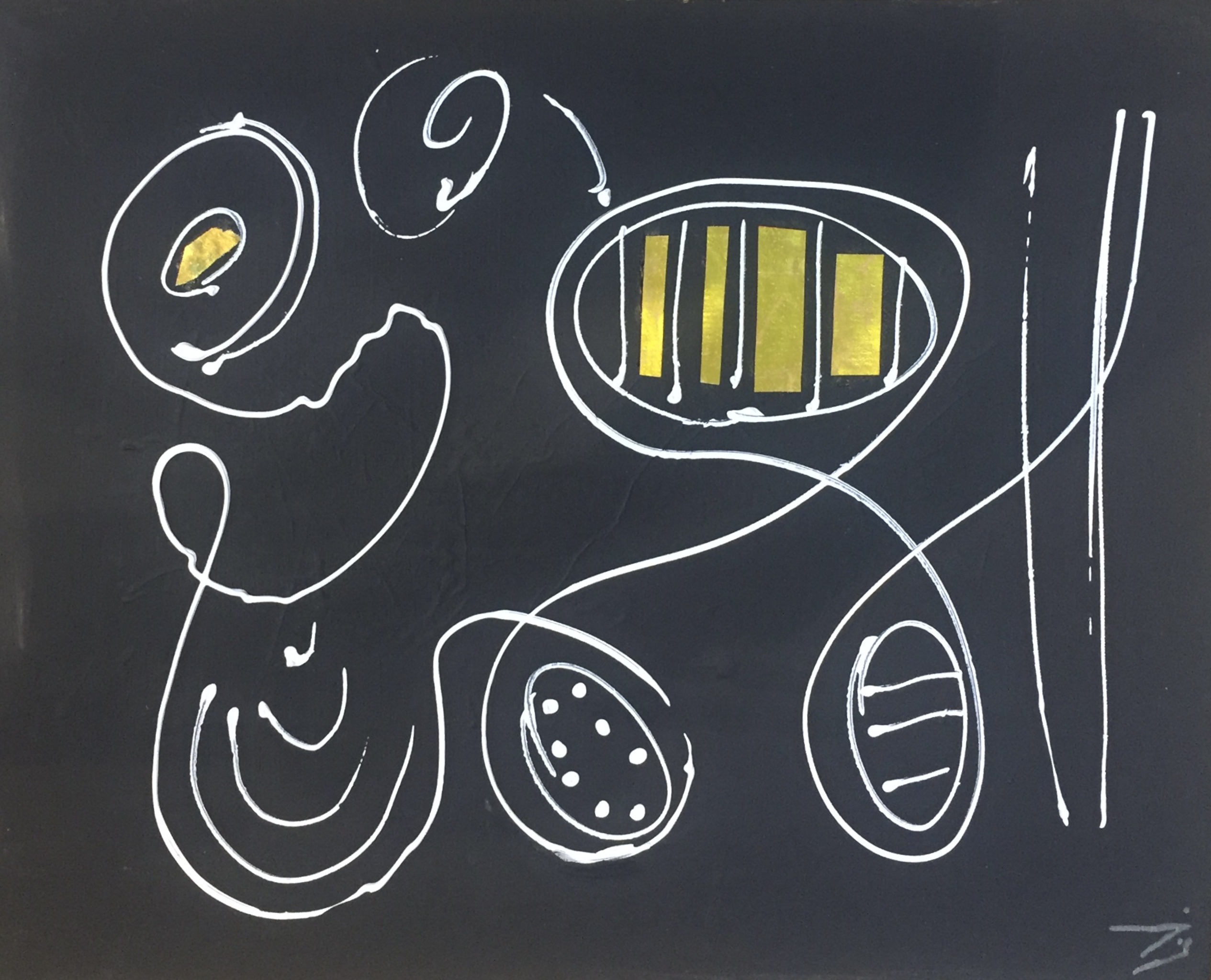 Wit Abstract Modern Zwart Goud Figuur Met Kunstwerk