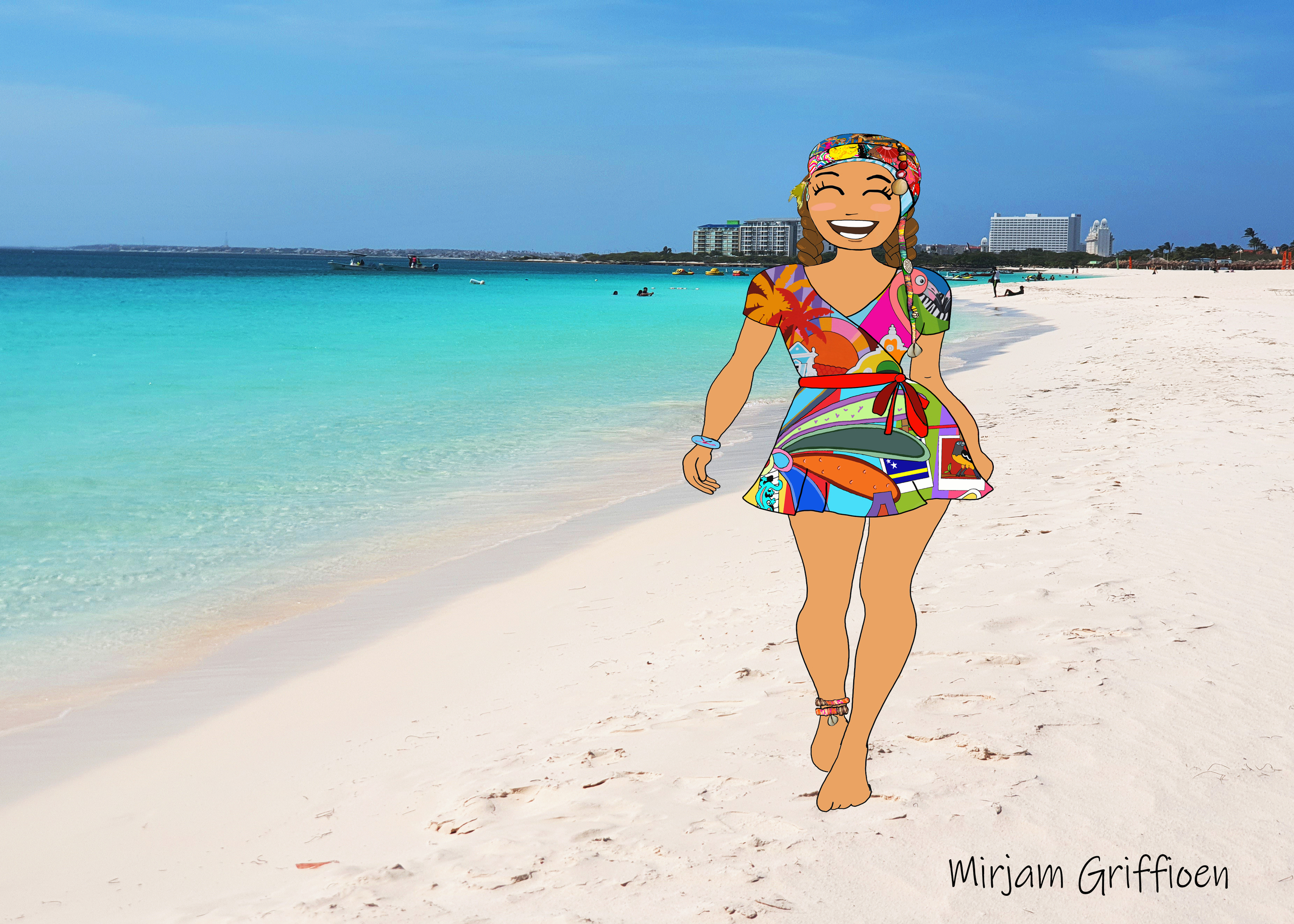 Mirjam Griffioen (1975) de vrolijke avontuurlijke kunstenares. Na 20 jaar Caribbean nu reizend in een camper door Europa. Art Adventures on Wheels.