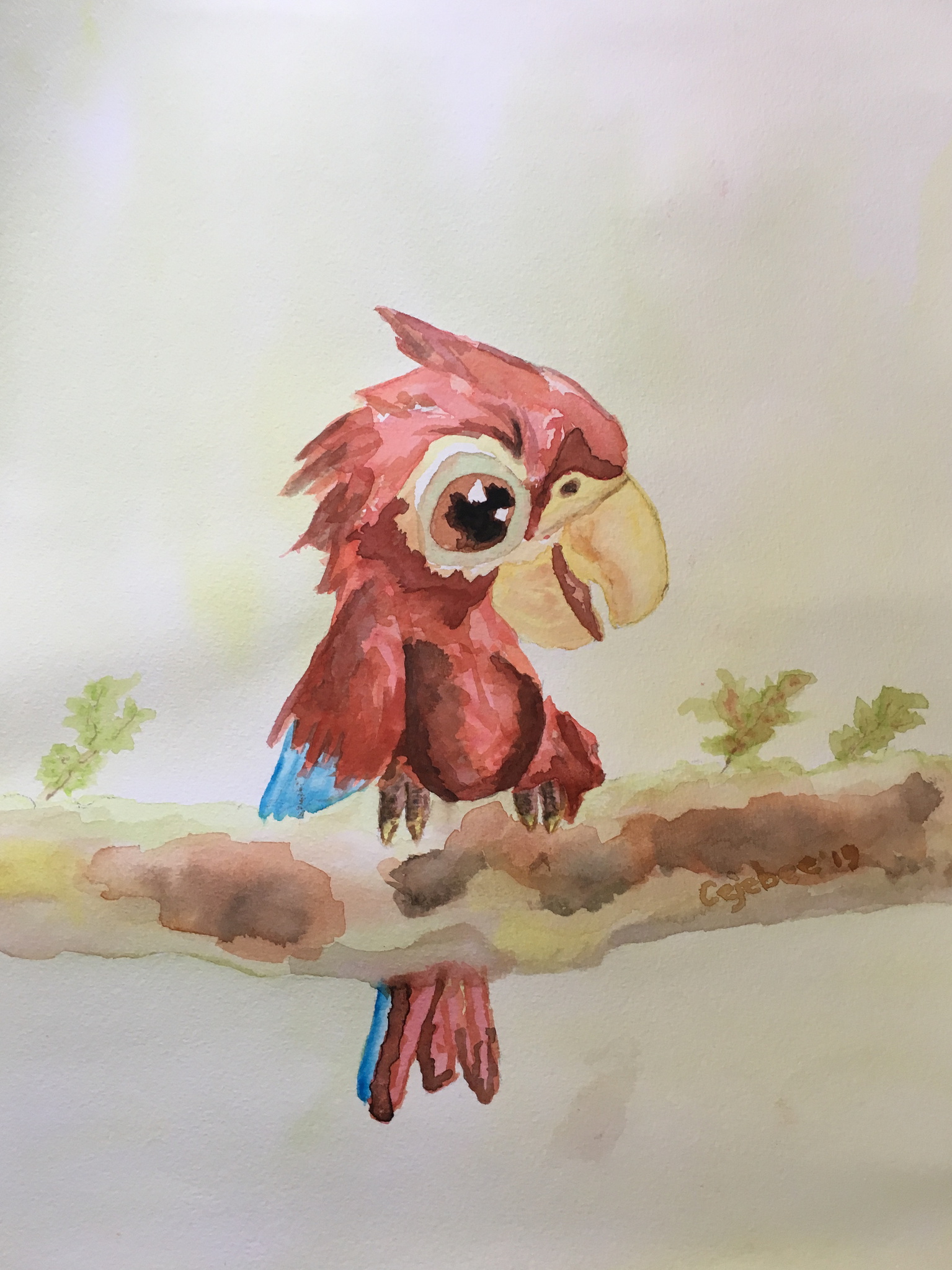 Weer eens aquarelleren. Het werd dezelfde papegaai die ik al paint brushte. Ik blijf het een mooie vogel vinden. Deze maal dus een aquarel.