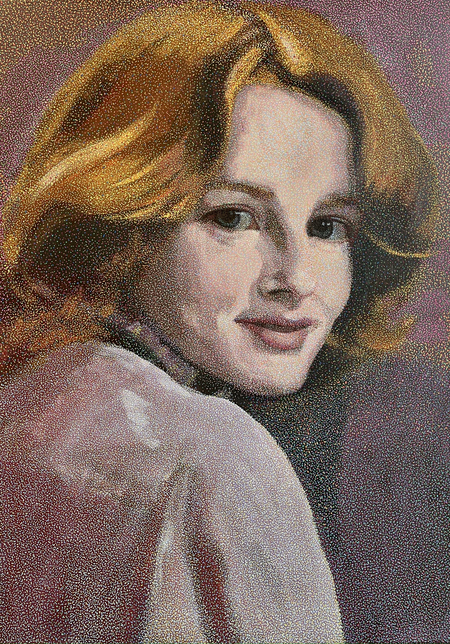 In mijn 'modern pointillistische' werk onderzoek ik of je de ziel kunt ‘vangen’ in een portret. De gelaagdheid van de duizenden stipjes, geeft de gelaagdheid van de binnenwereld weer.