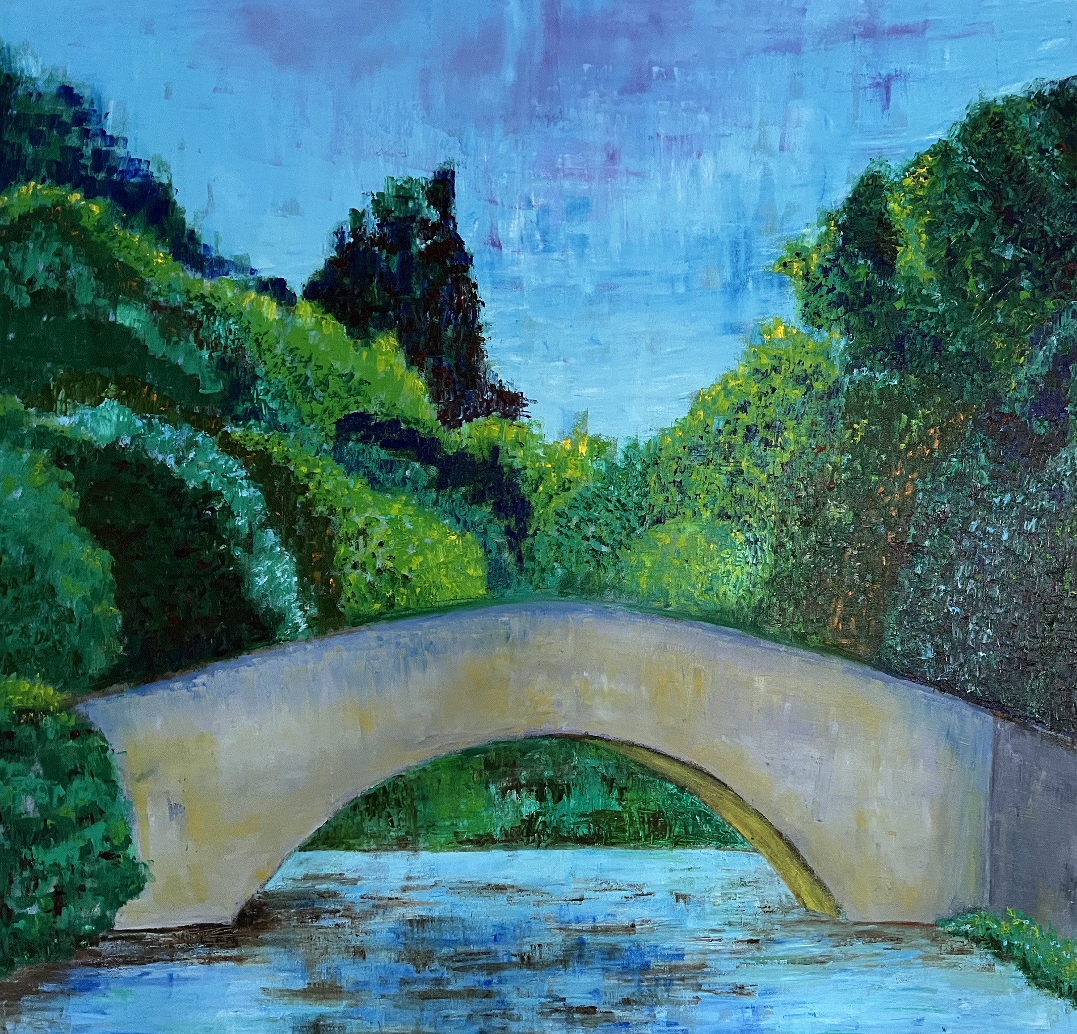Ik werk met acryl en hoofdzakelijk met olieverf. Inspiratiebronnen zijn de sfeer, het lijnenspel, de contrasten die ik zie. Ik vertrek vanuit datgene wat mij inspireert, en maak daar mijn eigen verhaal van. Door middel van kleur en compositie probeer ik vorm te geven aan datgene wat me raakt. Het materiaal waarmee ik werk, verf, gebruik ik vaak op een pasteuze manier. Kleurtonen volgen elkaar daarbij op.Omdat het schilderen tijdens het proces zijn eigen dynamiek heeft ontstaat het uiteindelijke resultaat in het werken zelf. Elk schilderij is voor mij een zoektocht die vaak leidt naar blije zomerse klanken.