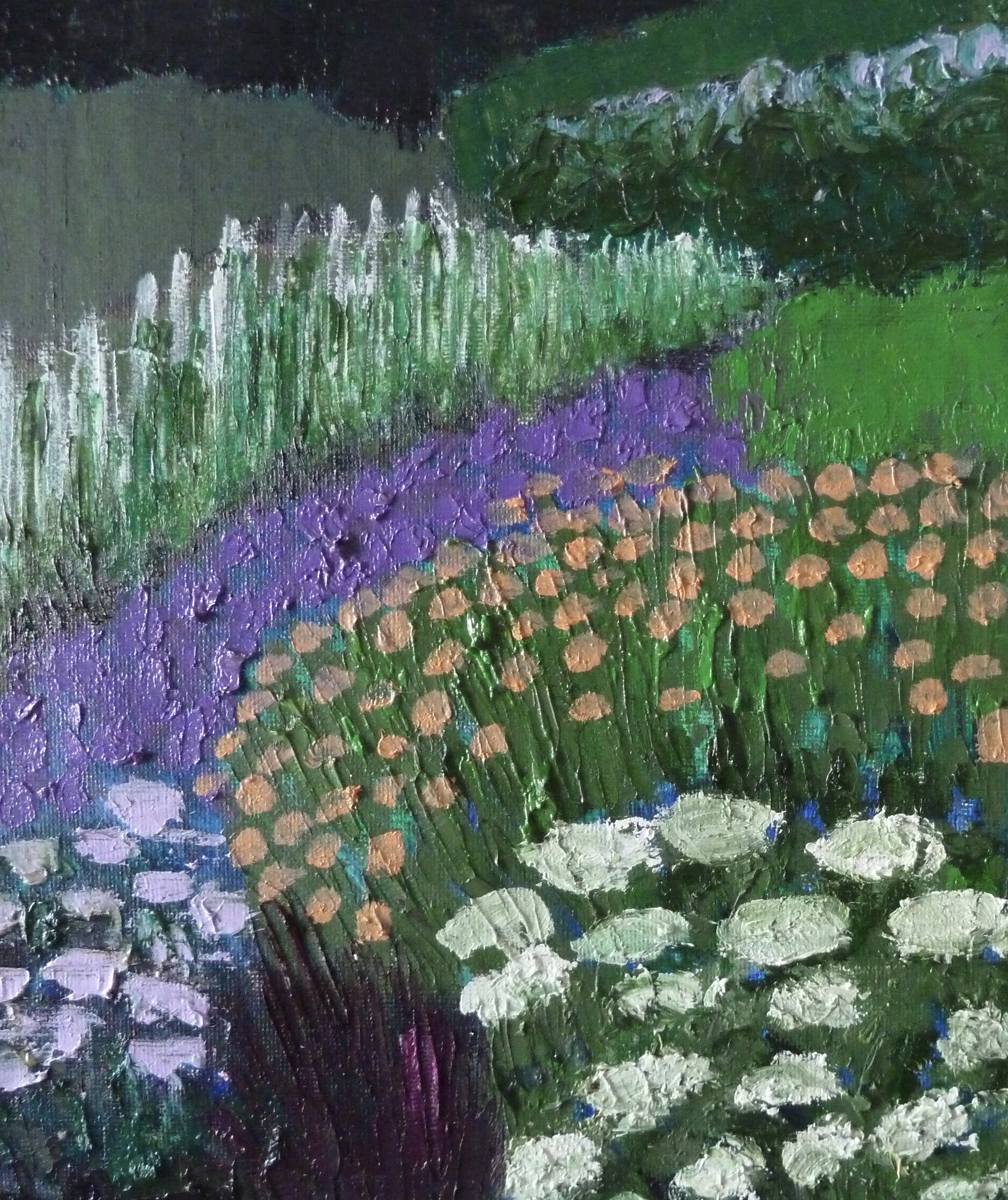 Ik werk met acryl en hoofdzakelijk met olieverf. Inspiratiebronnen zijn de sfeer, het lijnenspel, de contrasten die ik zie. Ik vertrek vanuit datgene wat mij inspireert, en maak daar mijn eigen verhaal van. Door middel van kleur en compositie probeer ik vorm te geven aan datgene wat me raakt. Het materiaal waarmee ik werk, verf, gebruik ik vaak op een pasteuze manier. Kleurtonen volgen elkaar daarbij op.Omdat het schilderen tijdens het proces zijn eigen dynamiek heeft ontstaat het uiteindelijke resultaat in het werken zelf. Elk schilderij is voor mij een zoektocht die vaak leidt naar blije zomerse klanken.