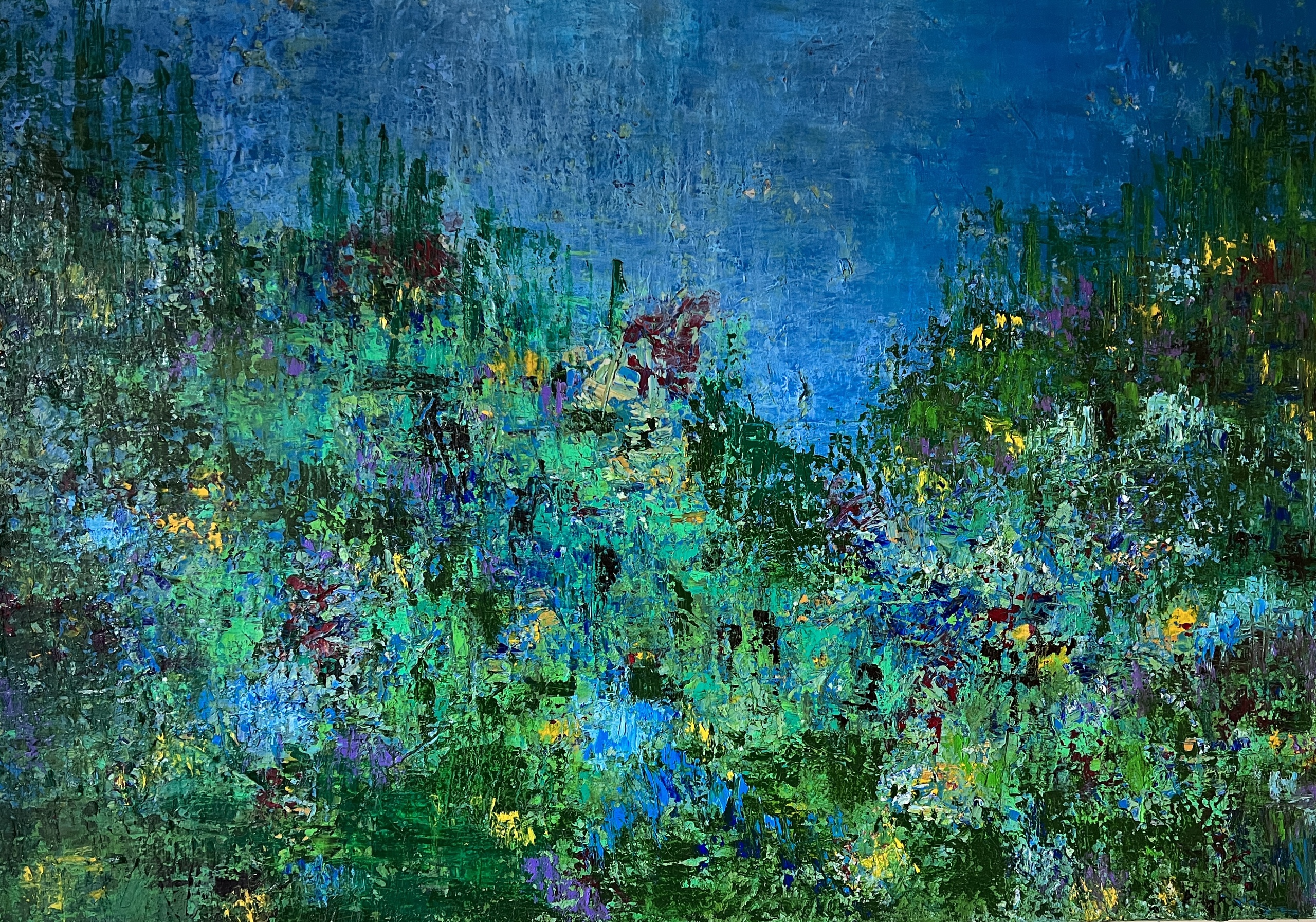 Ik werk met acryl en hoofdzakelijk met olieverf. Inspiratiebronnen zijn de sfeer, het lijnenspel, de contrasten die ik zie. Ik vertrek vanuit datgene wat mij inspireert, en maak daar mijn eigen verhaal van. Door middel van kleur en compositie probeer ik vorm te geven aan datgene wat me raakt. Het materiaal waarmee ik werk, verf, gebruik ik vaak op een pasteuze manier. Kleurtonen volgen elkaar daarbij op.Omdat het schilderen tijdens het proces zijn eigen dynamiek heeft ontstaat het uiteindelijke resultaat in het werken zelf. Elk schilderij is voor mij een zoektocht die vaak leidt naar blije zomerse klanken.