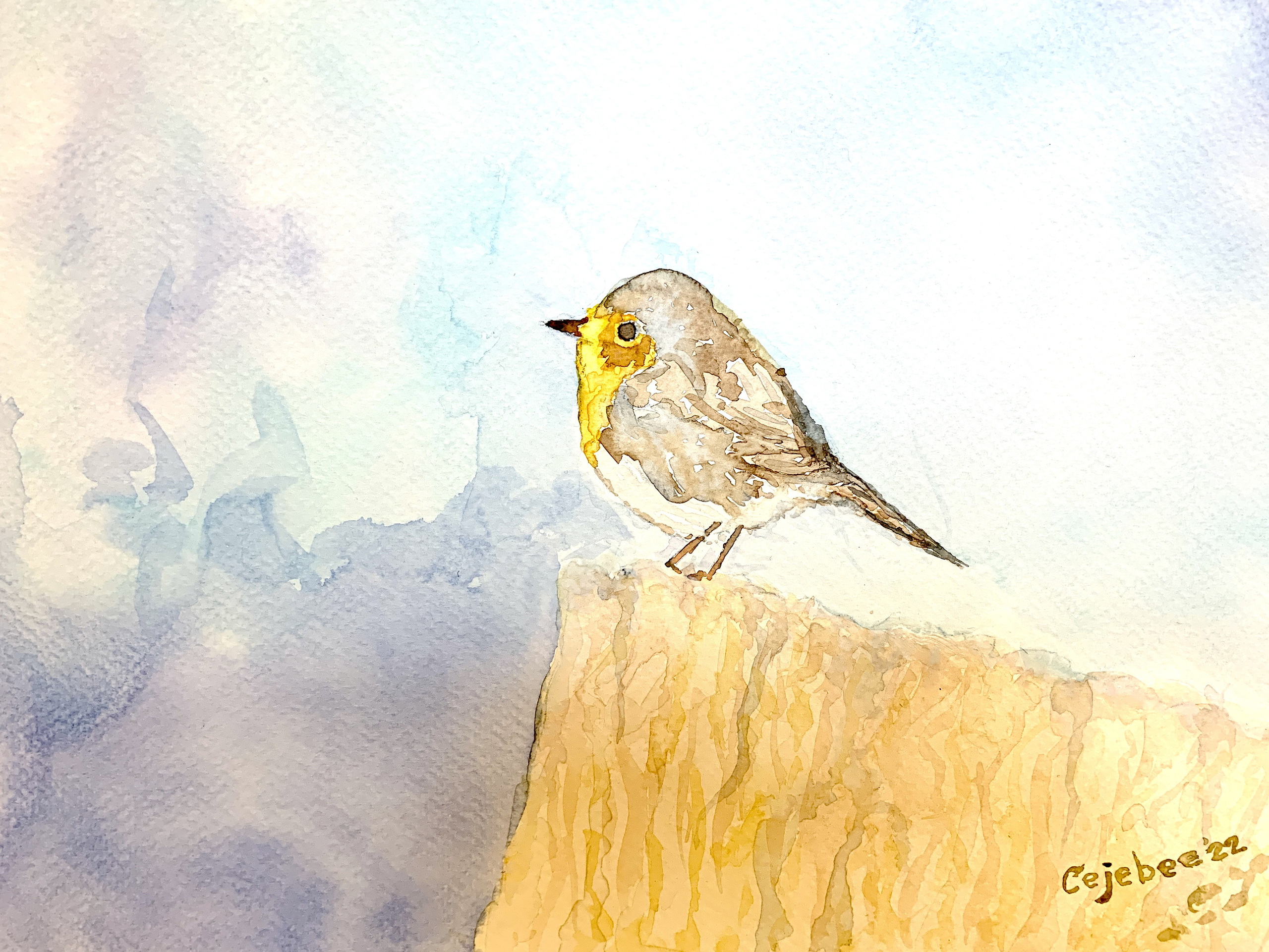Omdat ook ik, een roodborstje een schitterend vogeltje vind, mocht hij weer model staan. Opnieuw een aquarel omdat ik er niet goed tegen kan dat mijn verf vermengd met water alle kanten uitloopt, ook de kant die ik liever niet wil. Ik wil dit onder de knie krijgen.