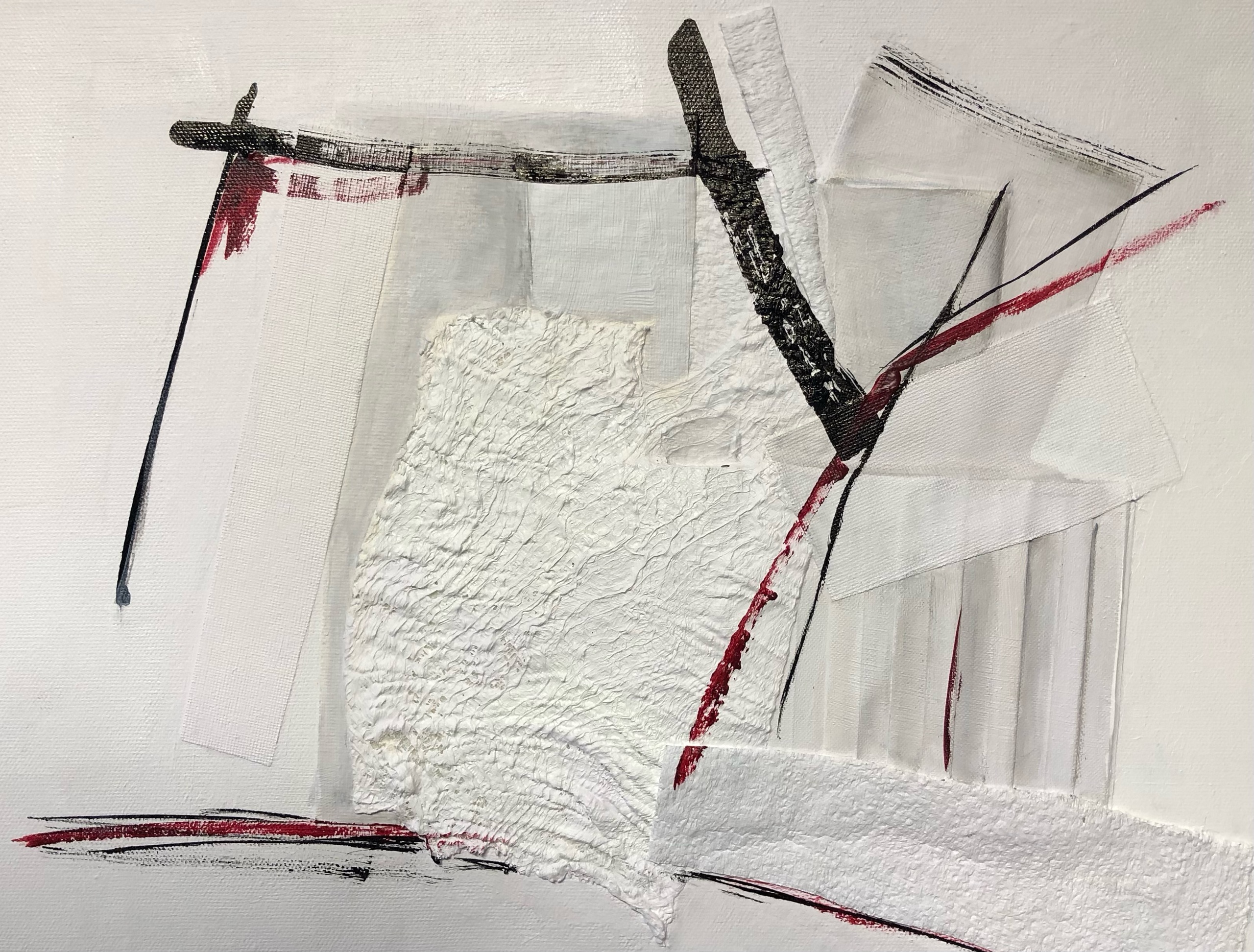 Daar waar eenvoud en schoonheid elkaar raken. Mixed media op heel mooi 30x20x5 linnen. Witte verf en een tipje grijs en geel, afgemaakt met inkt en krablak.