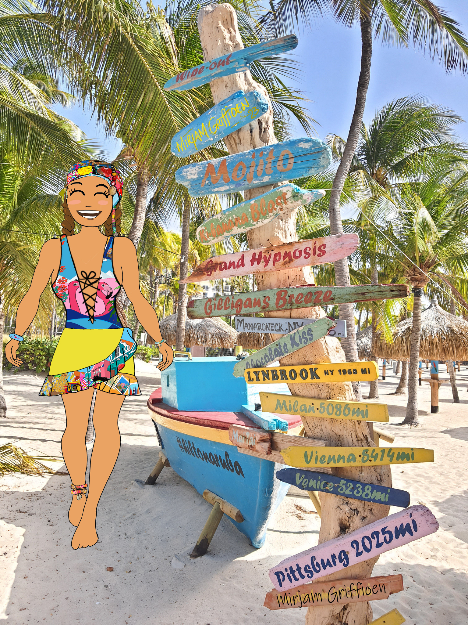 Drijfhout Vrolijk Kleurrijk Ansichtkaart Vakantie Aruba Palmbeach Eaglebeach Holiday Summertime Happy Onehappyisland Mirjamgriffioenart Kunstkopen Reizen Strand Beach Verjaardag Vrouw Islandgirl