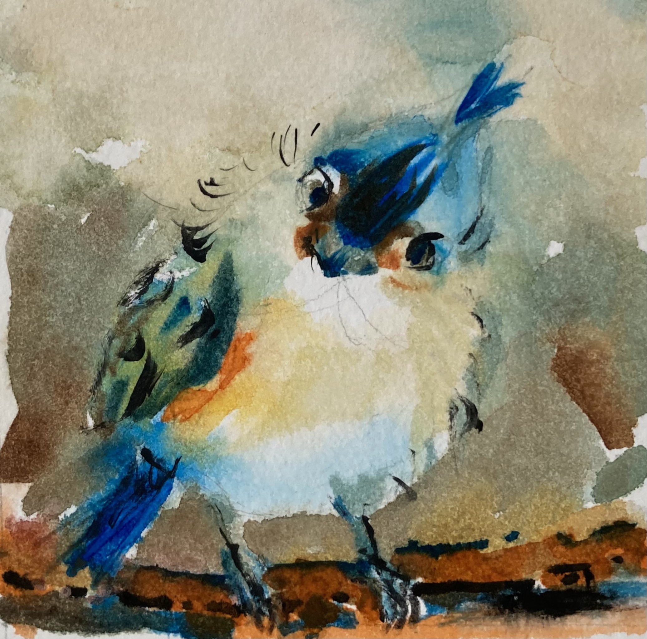 Kleurig ijsvogeltje in "nat-in-nat techniek "