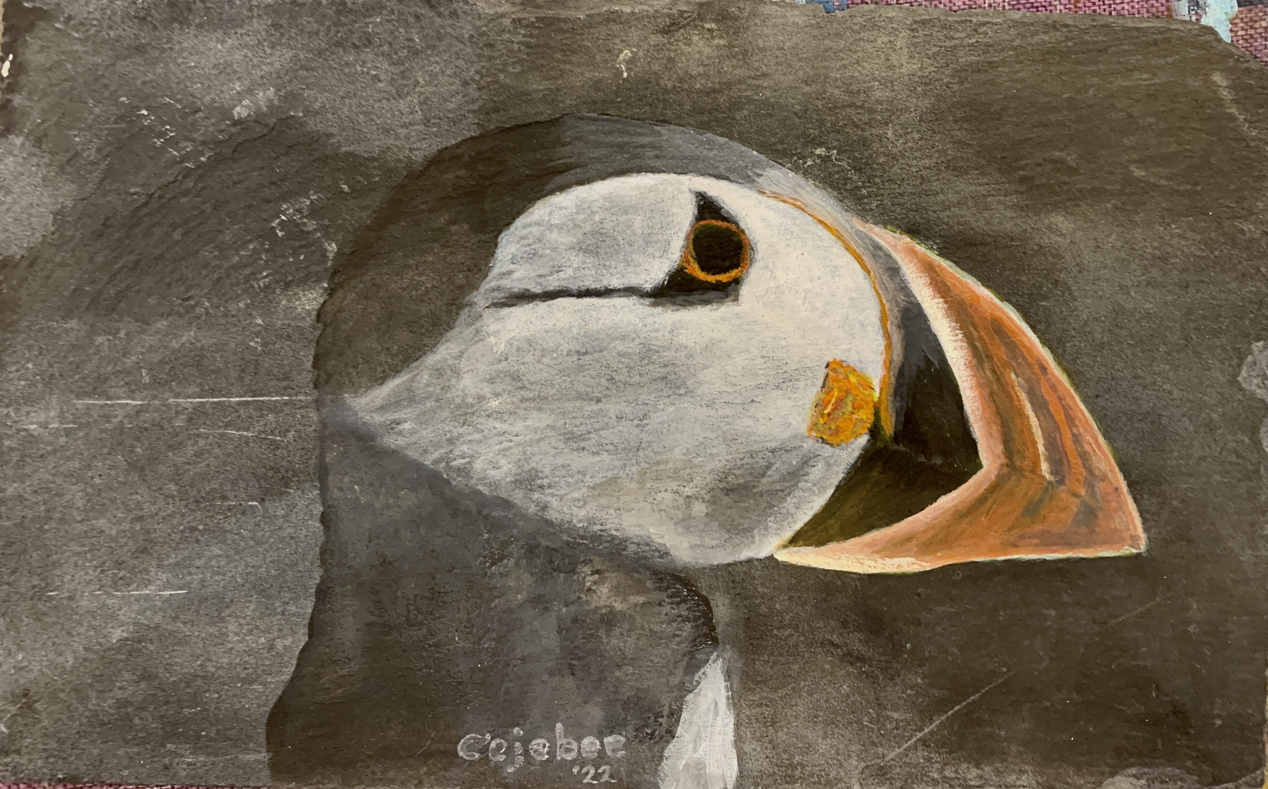 Papegaaiduiker nummer 2 op oude lei - horizontaaal met minder verf