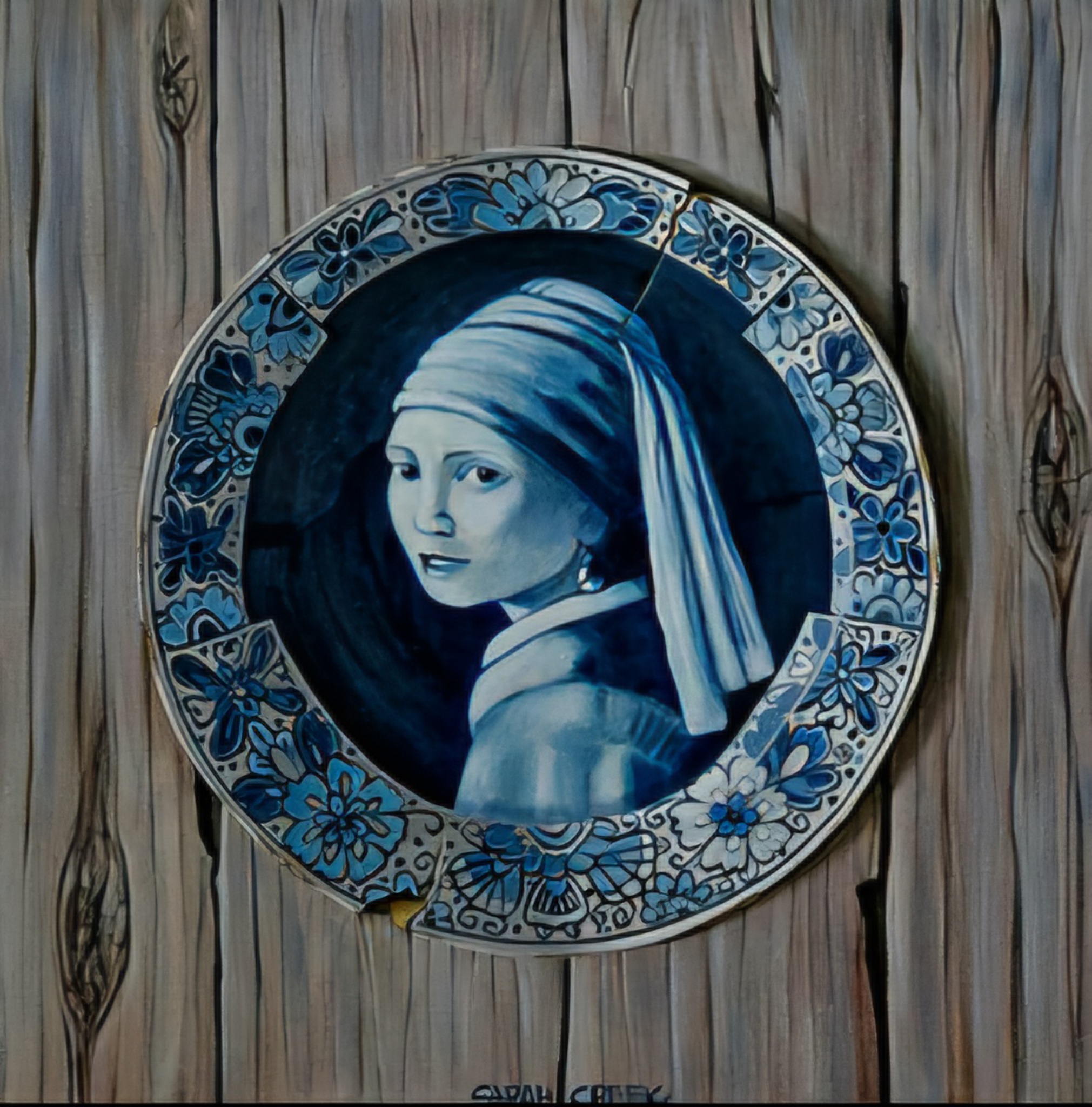 Blauw Acryl Kunst Realisme Vermeer Delfst Meisjemetdeparel