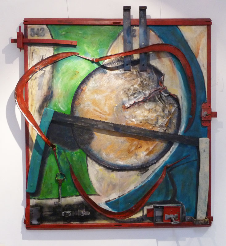 Iets in de buitenwereld intrigeert mij en door deze impressie uit te werken wordt zij blijvend deel van mijn binnenwereld. Laag na laag bouw ik aan de uiteindelijke vorm. Tijdens het werken komt er een stroom van associaties op gang. Het is een constant zoeken naar evenwicht tussen de verf en de andere materialen.
