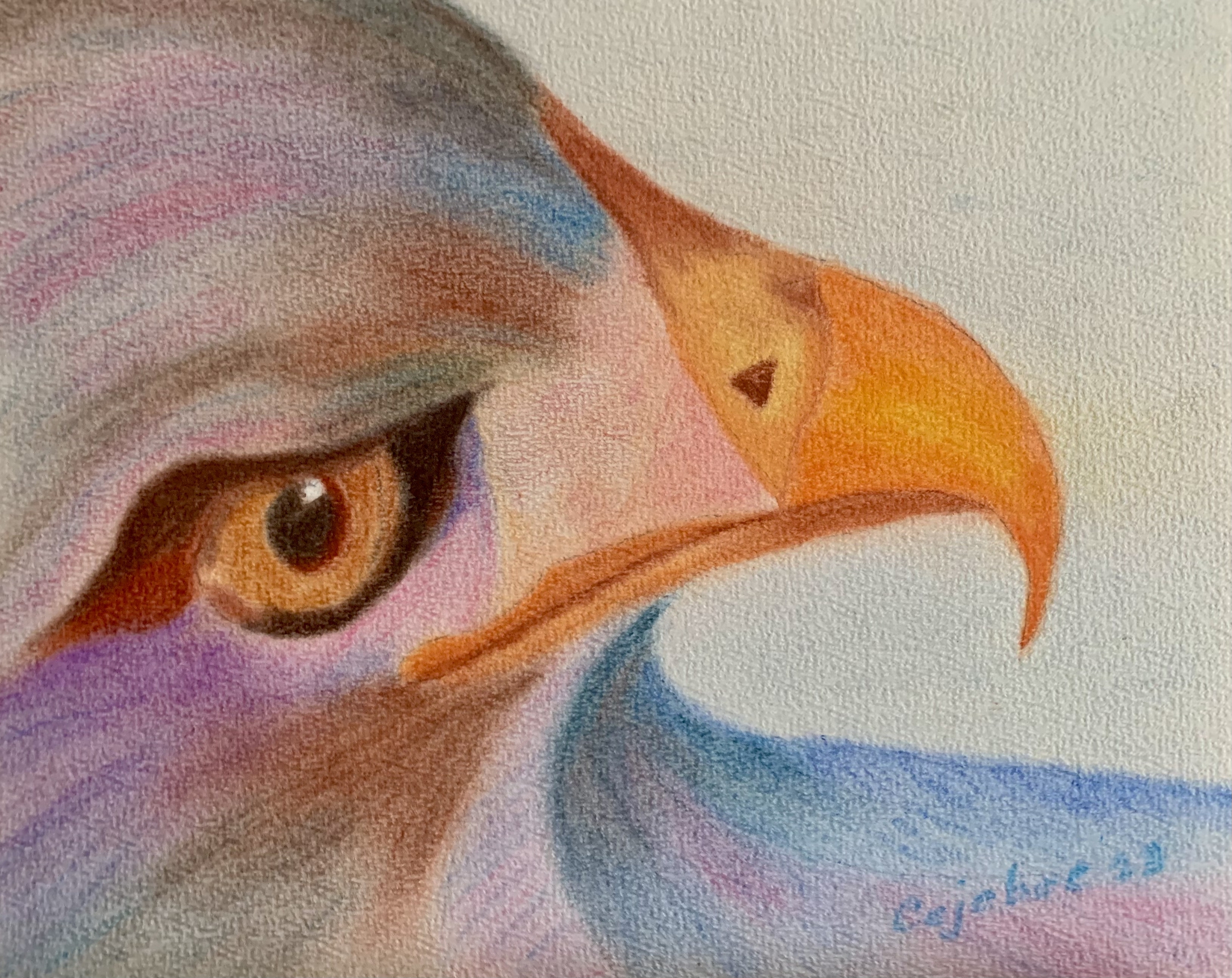 Roofvogelkop met soft pastel krijt
