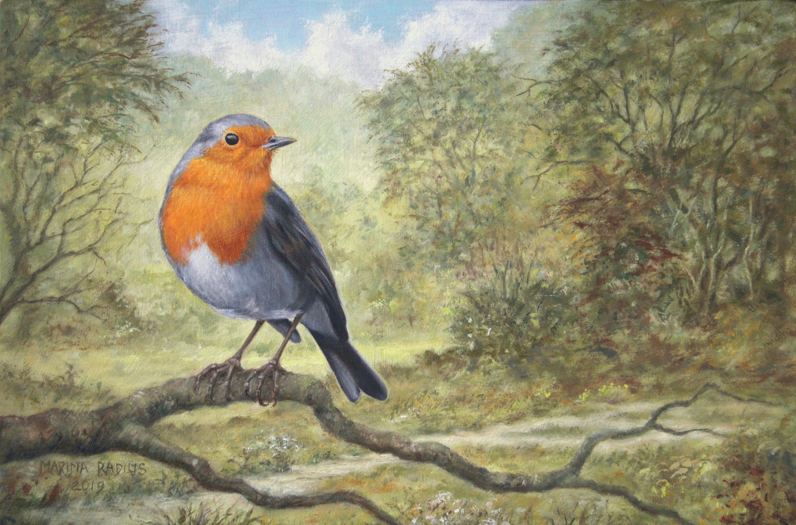 Het roodborstje is voor mij een favoriet vogeltje om te schilderen; ik kom het bijna dagelijks tegen of hoor het zingen, altijd prachtig.