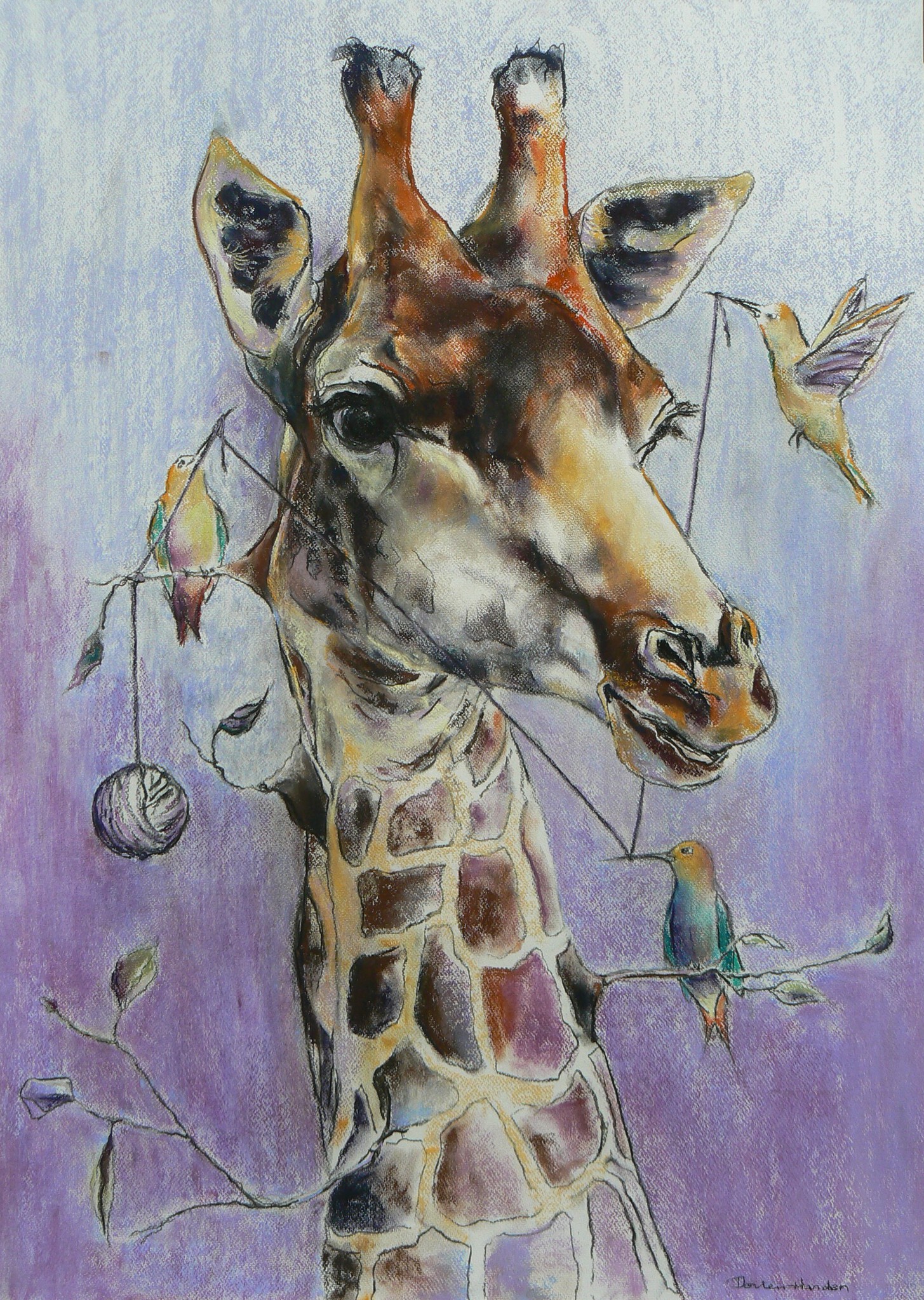 Geel Paars Bruin Giraffe Wol Groot Pastel Vrolijk Spelen Vogeltjes Lila Speels Bolletje Draadje