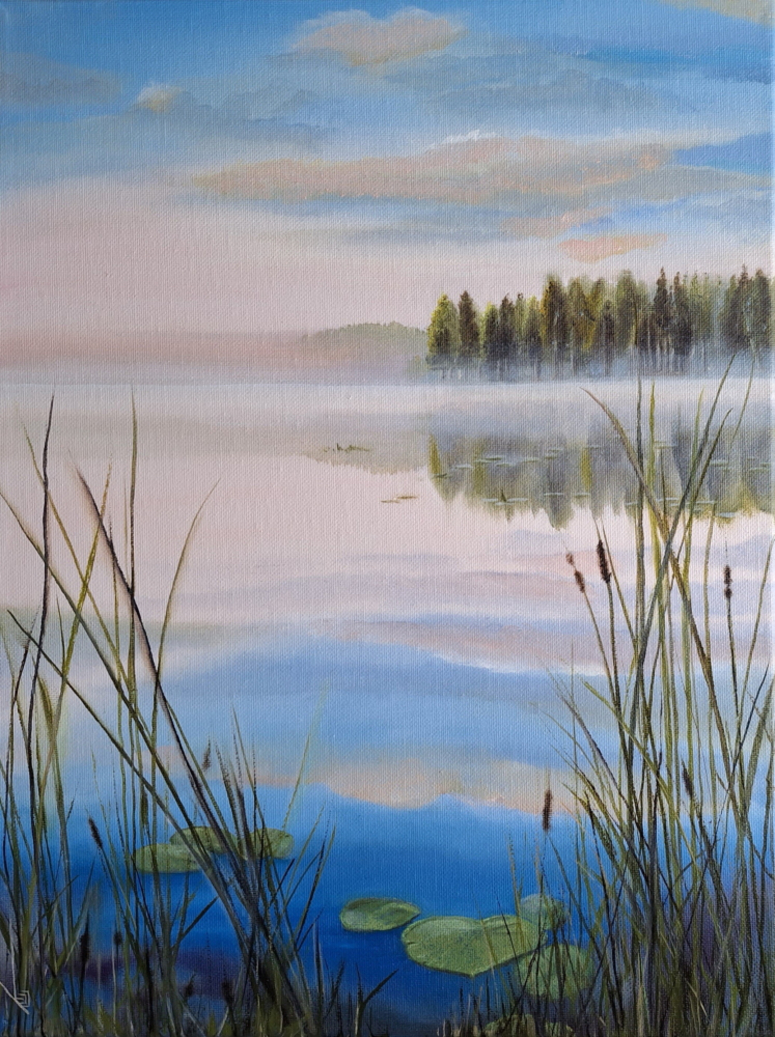 Landschap Water Magisch Olieverf Vergezicht Sfeer Mist Riet Winters