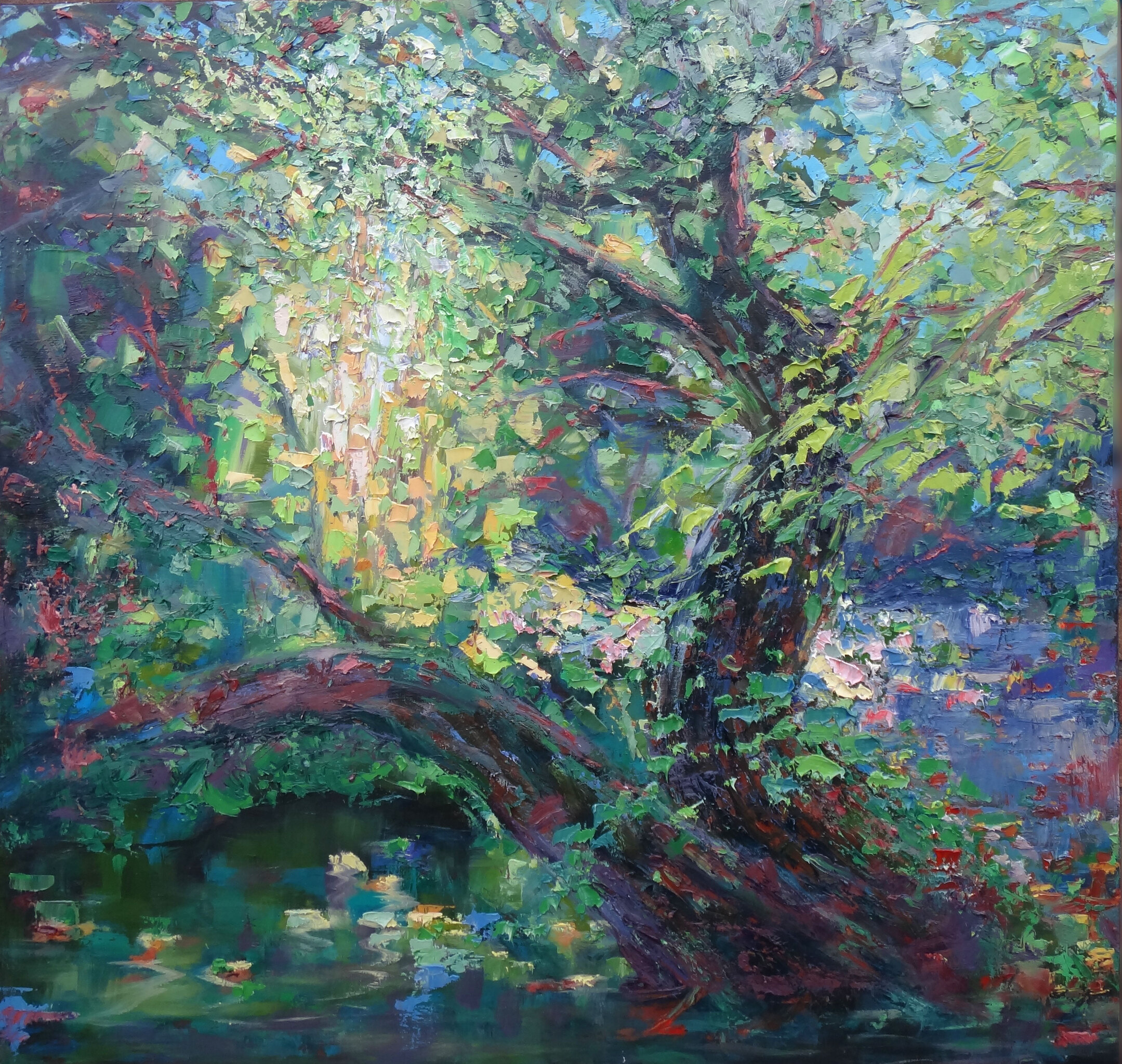Natuur Likjes is een serie aan het worden, en omvat beelden die met paletmes in olieverf zijn opgebracht, deels op doek gemixt en in lagen over elkaar.