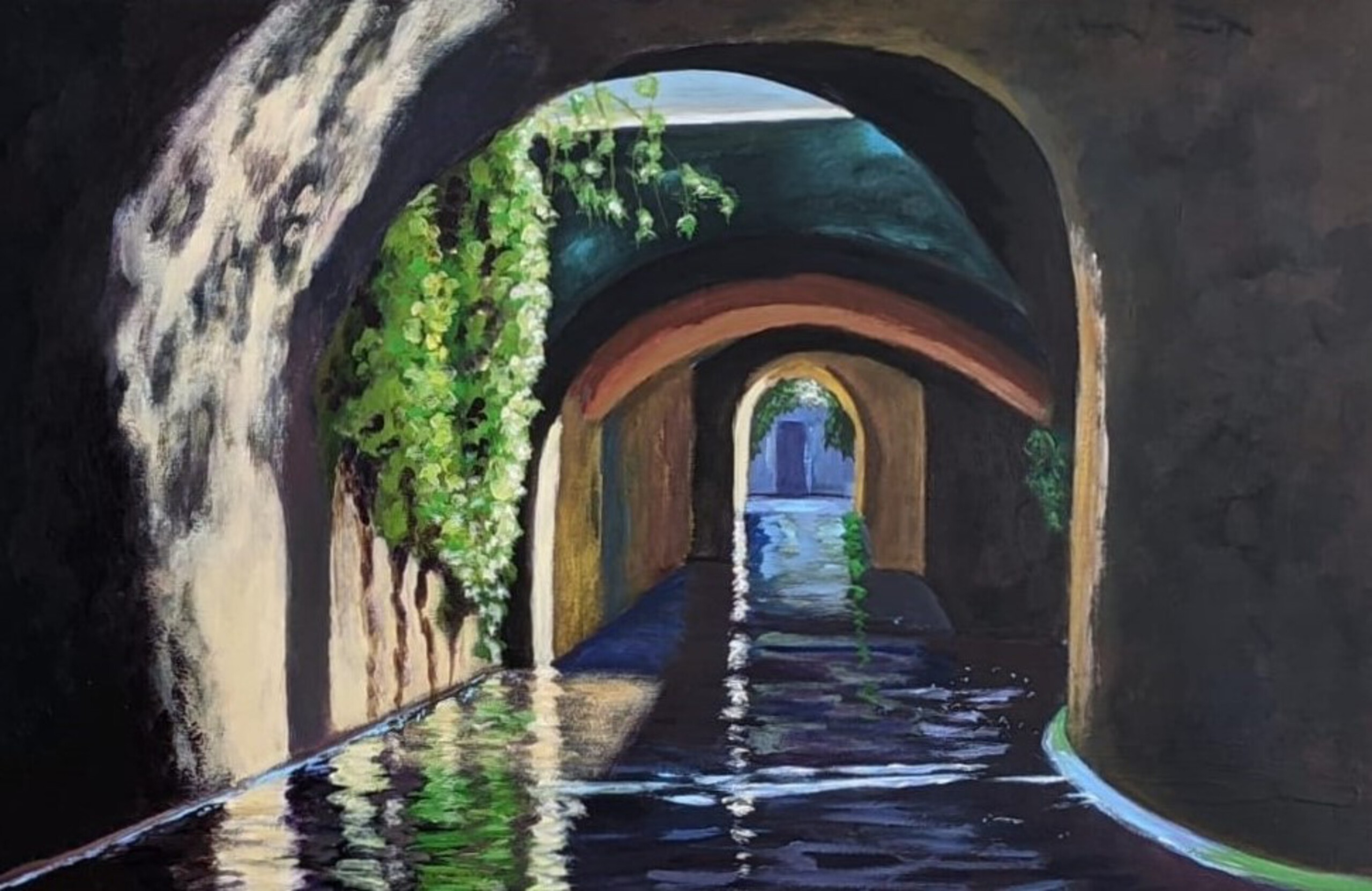 binnendieze 's hertogenbosch, acryl op doek 120 x 80
