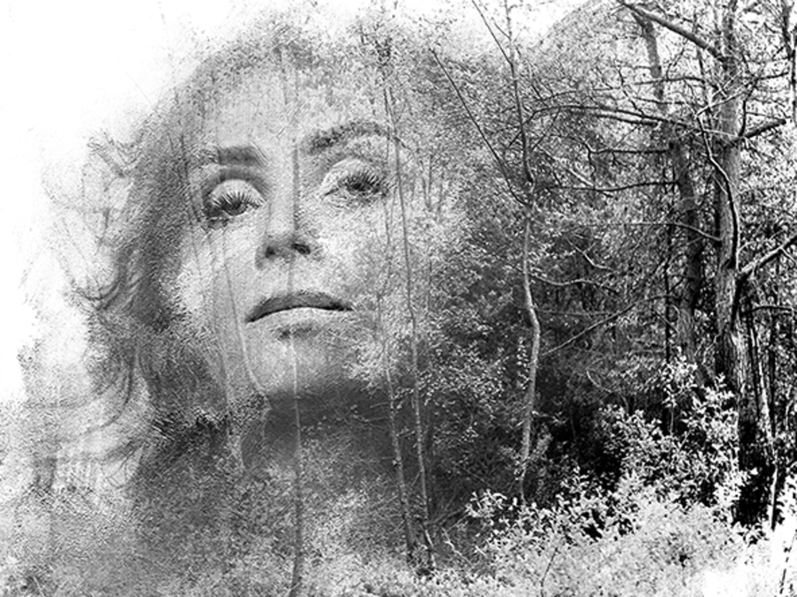 Wit Surreeel Zwart Portret Digitaal Bomen Dibond