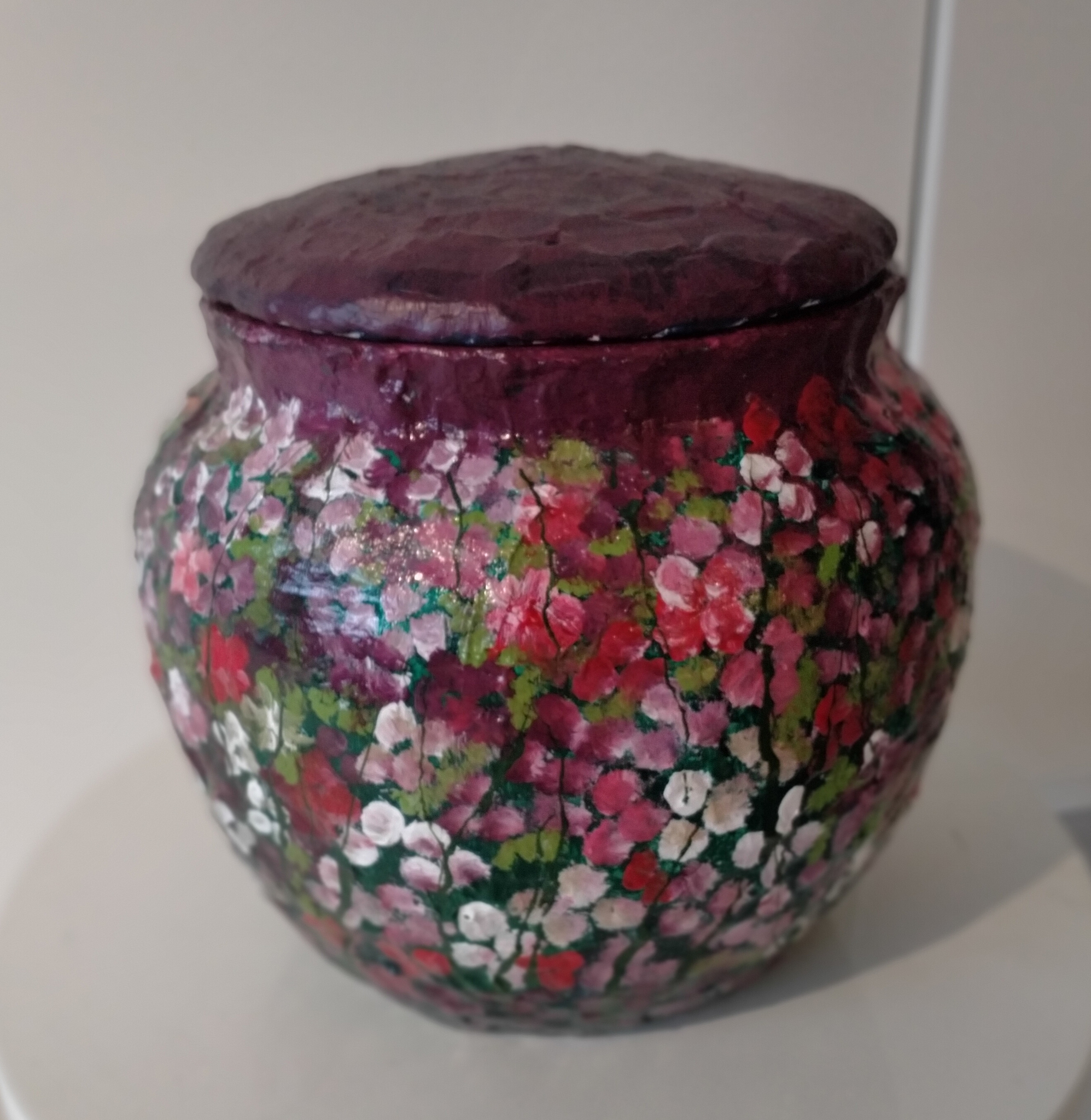 Pot beschilderd met bloemen (keramiek)