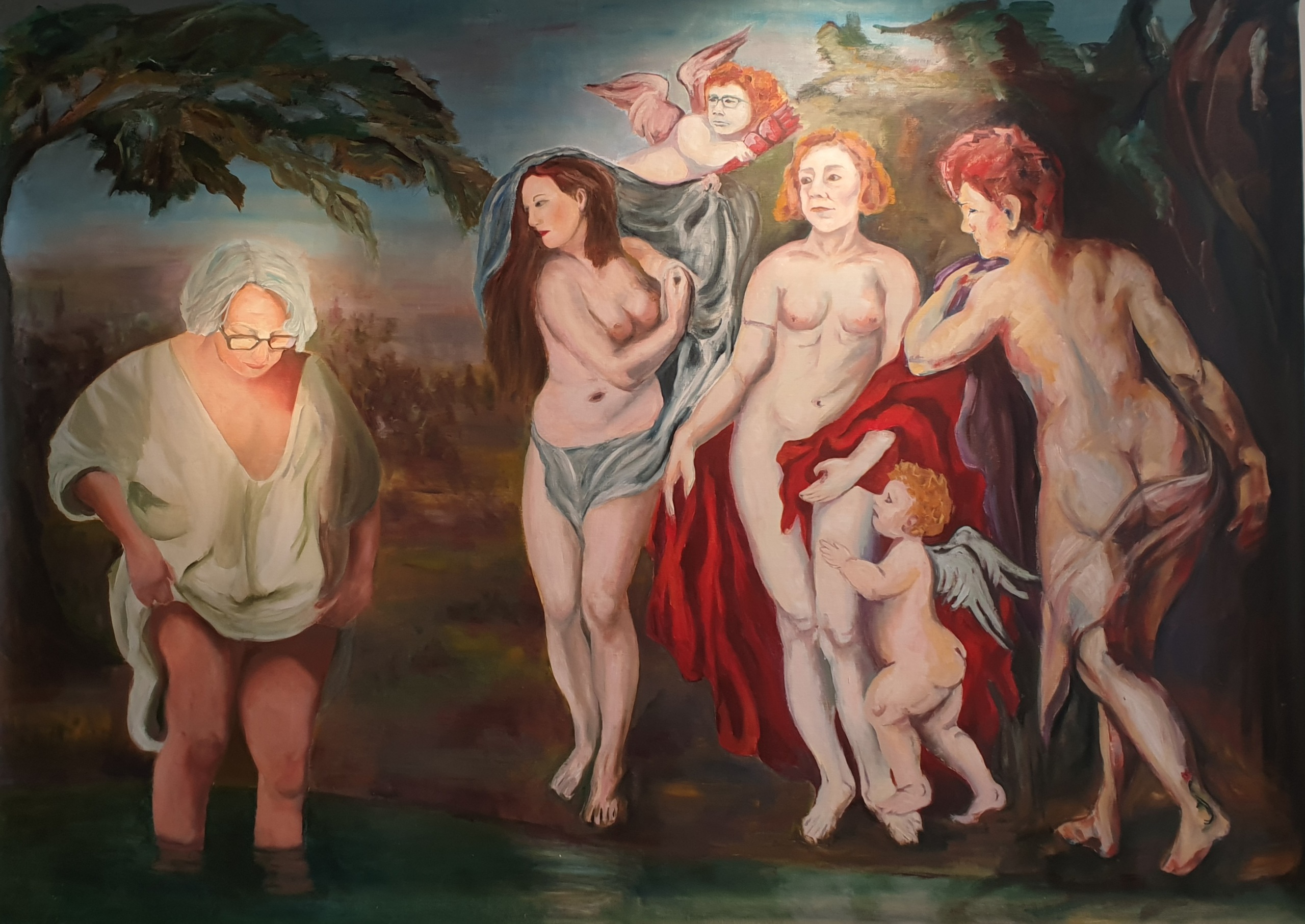 Voor ons afstuderen maakten we gezamelijk dit schilderij. De 4 "wannebees" . We hebben veel aan elkaar gehad, tijdens onze ontwikkeling naar kunstenares. 4 verschillende karakters en toch hebben we zo goed samengewerkt aan dit project.