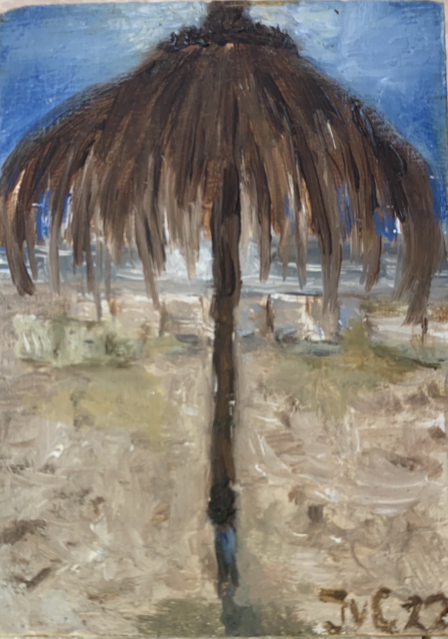 Zee Zon Strand Olieverf Zonnig Romantisch Zomer Impressionistisch Minischilderij Petitpeintre Bali-parasol Nederzandtbeach