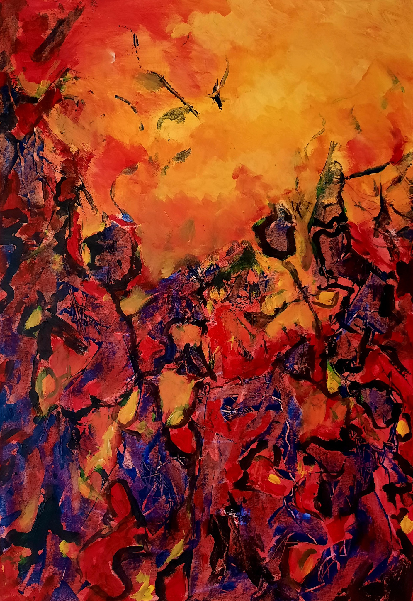 Geïnspireerd door een mooie, verheffende, spirituele tekst geef ik me over aan mijn gevoel. Stapje voor stapje, laag over laag, gebruikmakend van een sponsje, penselen en een paletmes ontstaat dit werk. Van onderaf, omhoog, totdat het goed voelt.