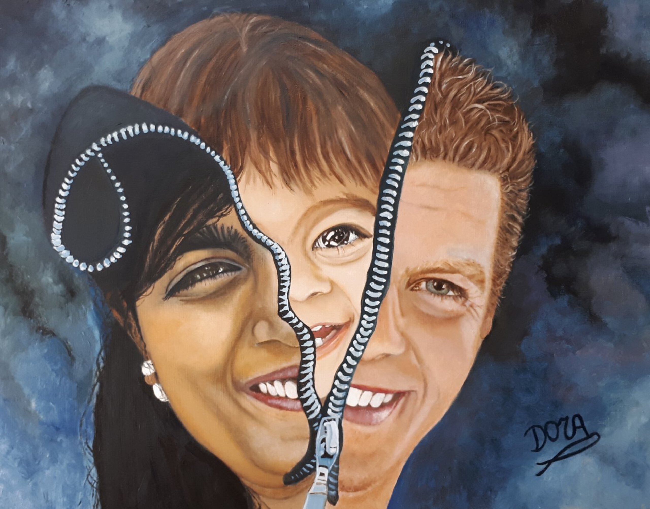 Dieren kennen we vaak menselijke eigenschappen toe (antropomorfisme) in mijn schilderijen gedragen de dieren zich als mensen.