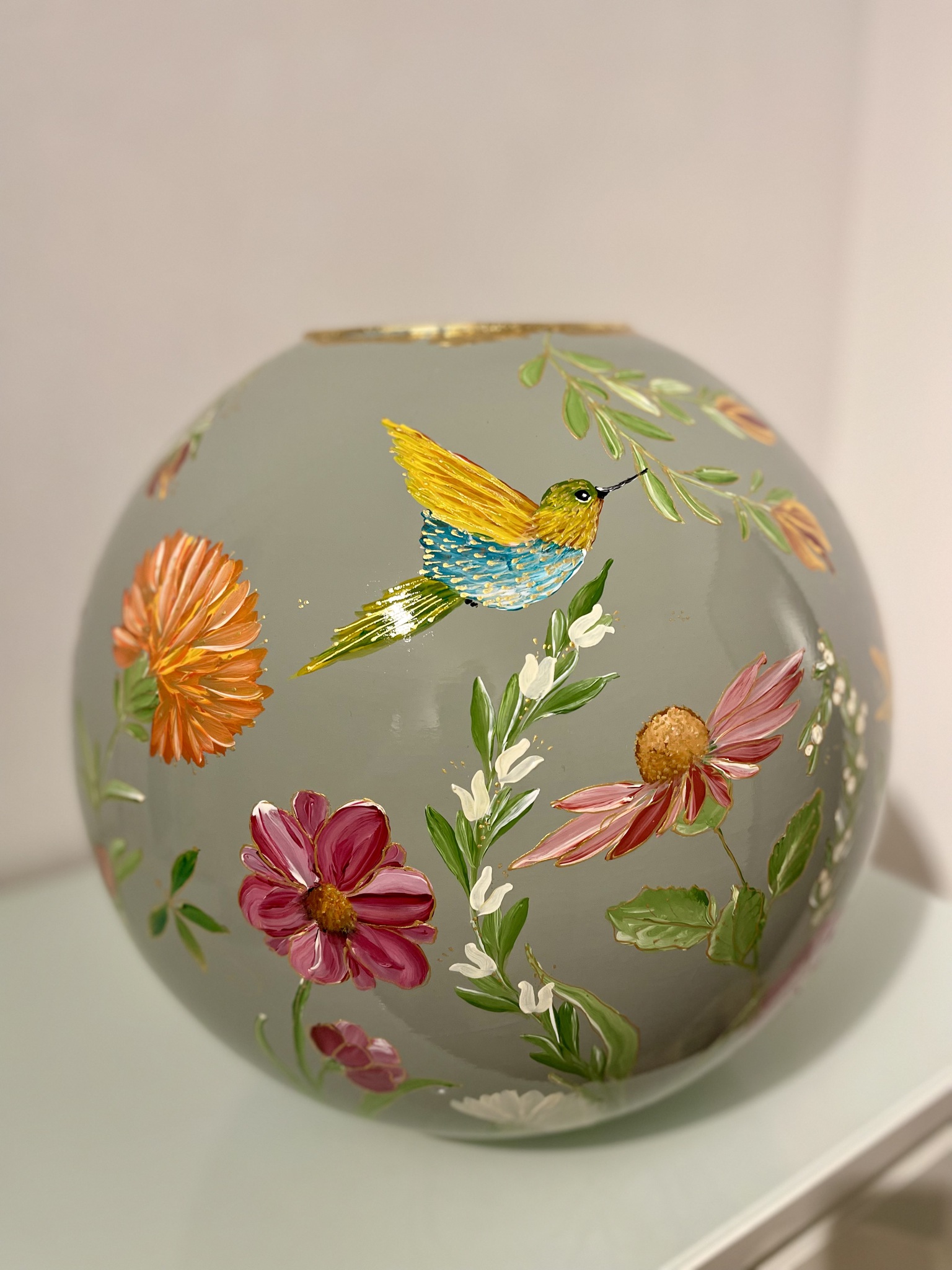 Mijn naam is Ariane Koch. Woon en werk in Tiel. Ik maak handbeschilderde vazen. De vazen staan vol met kleurrijke bloemen, vlinders en of vogels. Elke vaas is een bijzonder designobject.