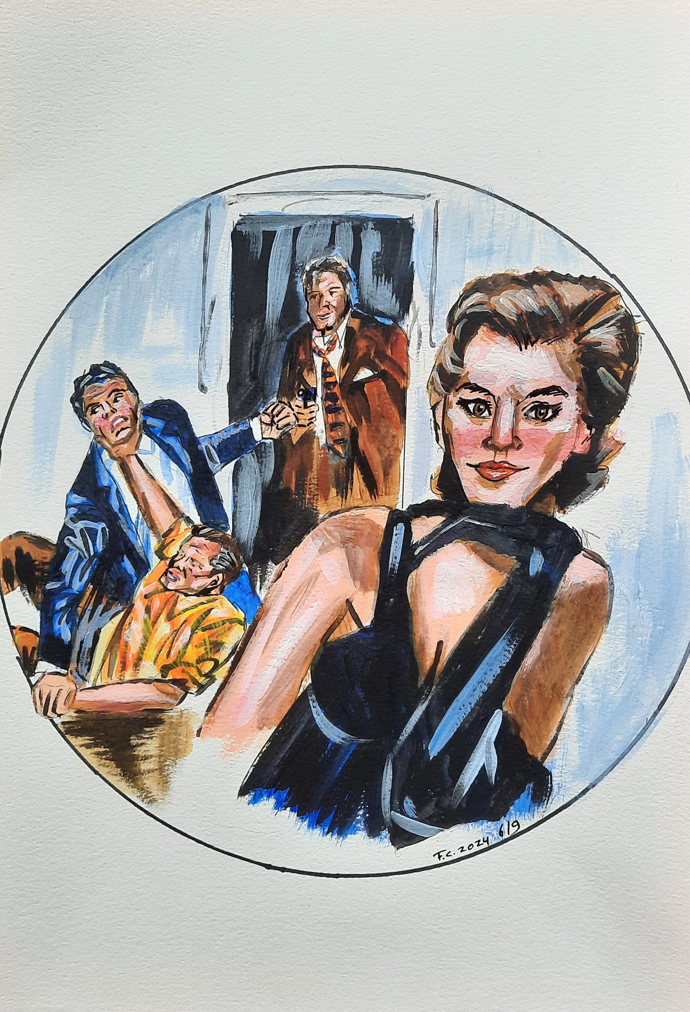 Vrouw Art Ruzie Mannen Retro Gevecht Vintage Pulp Fight