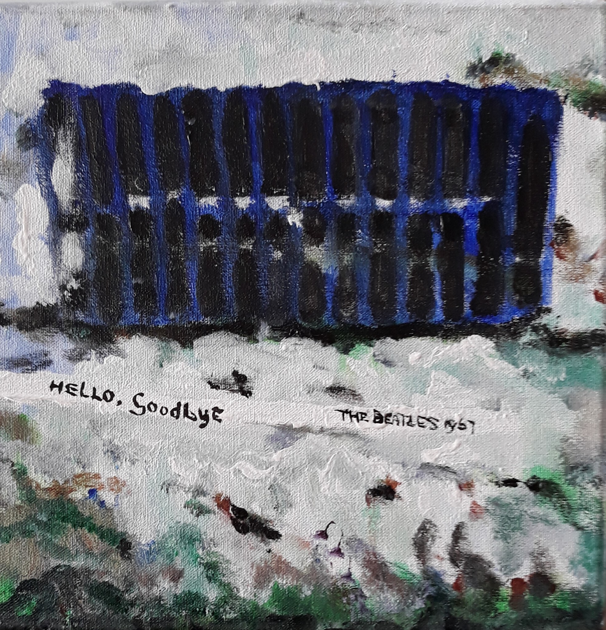 Hello Goodbye 1967, The Beatles steentje, afmeting 20 x20 x 3 cm, acrylverf.