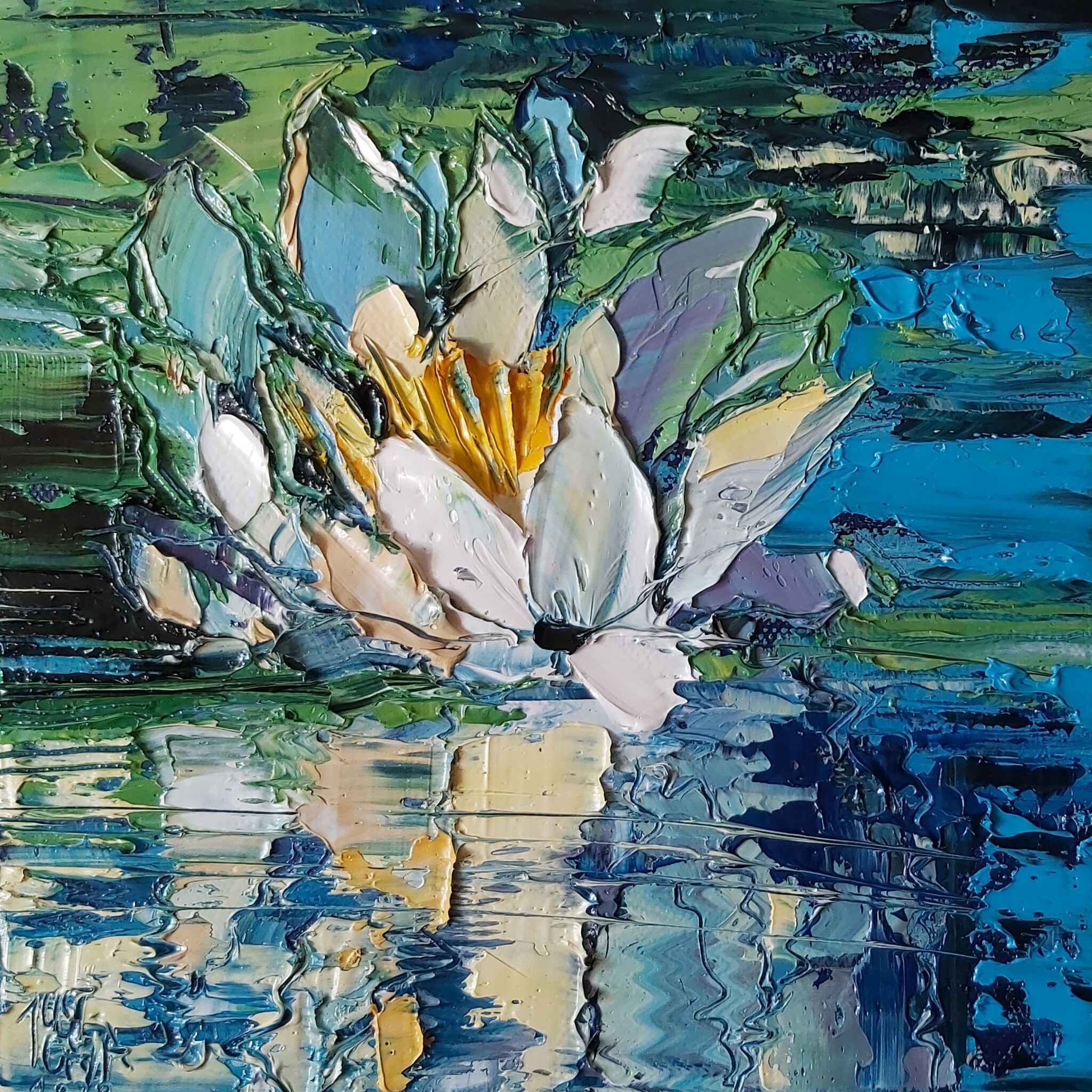 Geschilderd met paletmessen en pasteuze verf (impasto) in alla prima techniek. KLIK OP DE AFBEELDING VOOR EEN CLOSE-UP.