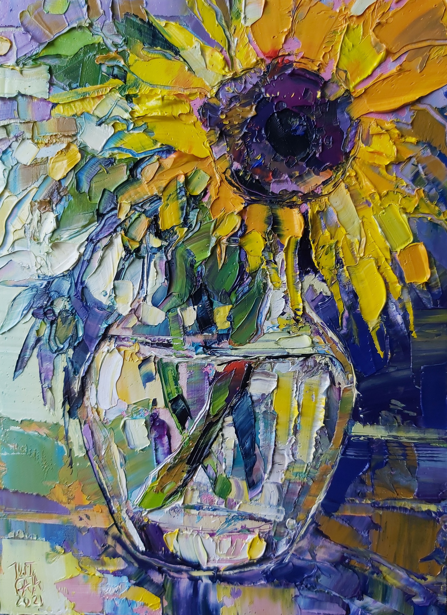 Geschilderd met paletmessen en pasteuze verf (impasto) in alla prima techniek. KLIK OP DE AFBEELDING VOOR EEN CLOSE-UP.
