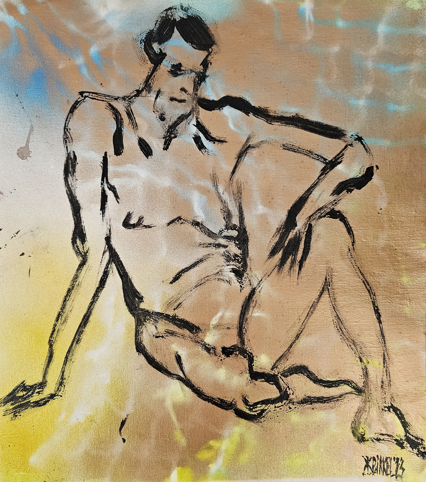 Bikkel - model drawing 20231108 - mixed medie on linen - 48x41cm - 2023 - 950