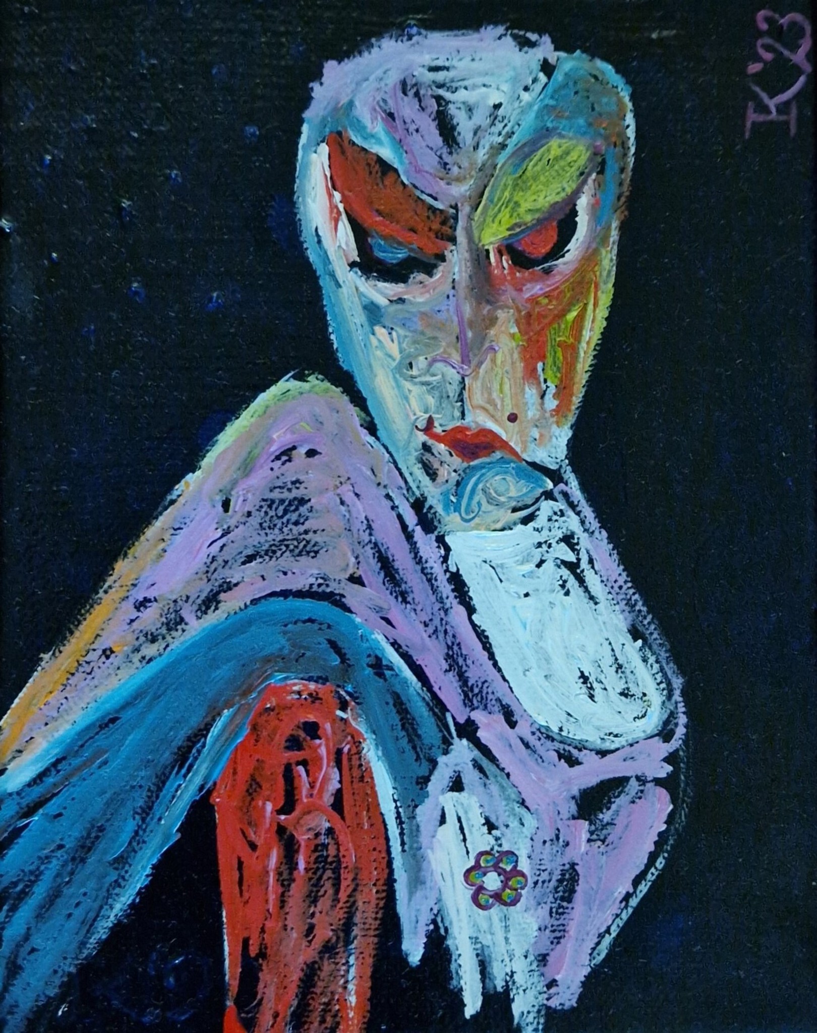 ‘Un grain de beauté’ ou ‘Une tache de beauté’ ? Olieverf op linnen, 18 x 13 cm, Pictoright. Aan de achterkant zijn twee haakjes bevestigd met daartussen een touwtje, waardoor je het schilderijtje kunt ophangen. De prijs is exclusief verzendkosten. Als je je aanmeldt voor mijn maandelijkse gratis nieuwsbrief - zie links, onder communicatie - ontvang je bij aanschaf 10 % korting. Oil paint on linen, 18 x 13 cm, Pictoright. This work can be hung. The price does not include shipping costs. If you sign up for my newsletter, see bottom left under 'contact', you will receive a 10% discount when purchasing this work.