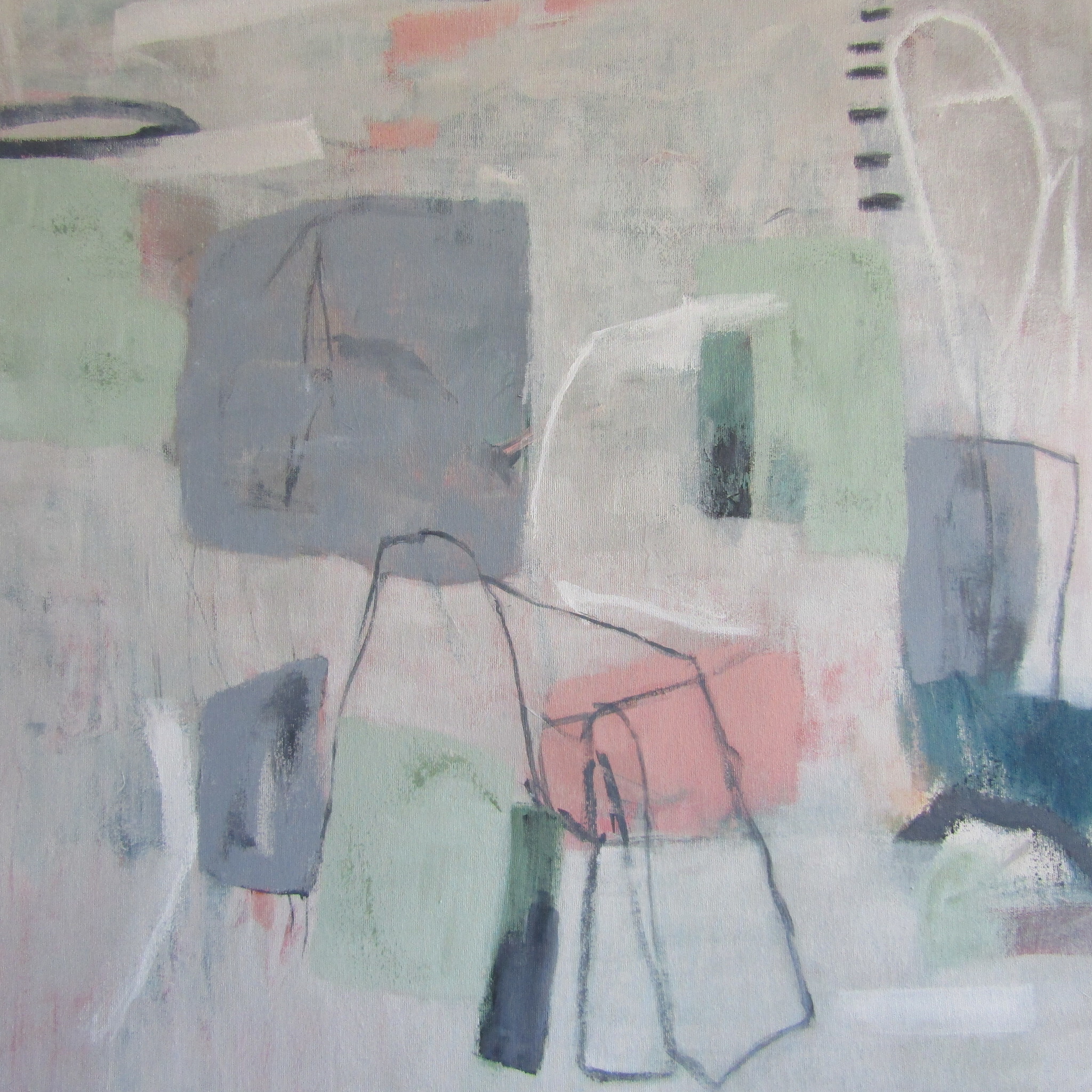 Groen Roze Grijs Minimalistisch Geometrisch Poëtisch Lyrisch Abstract Kunstwerk Interieurkunst