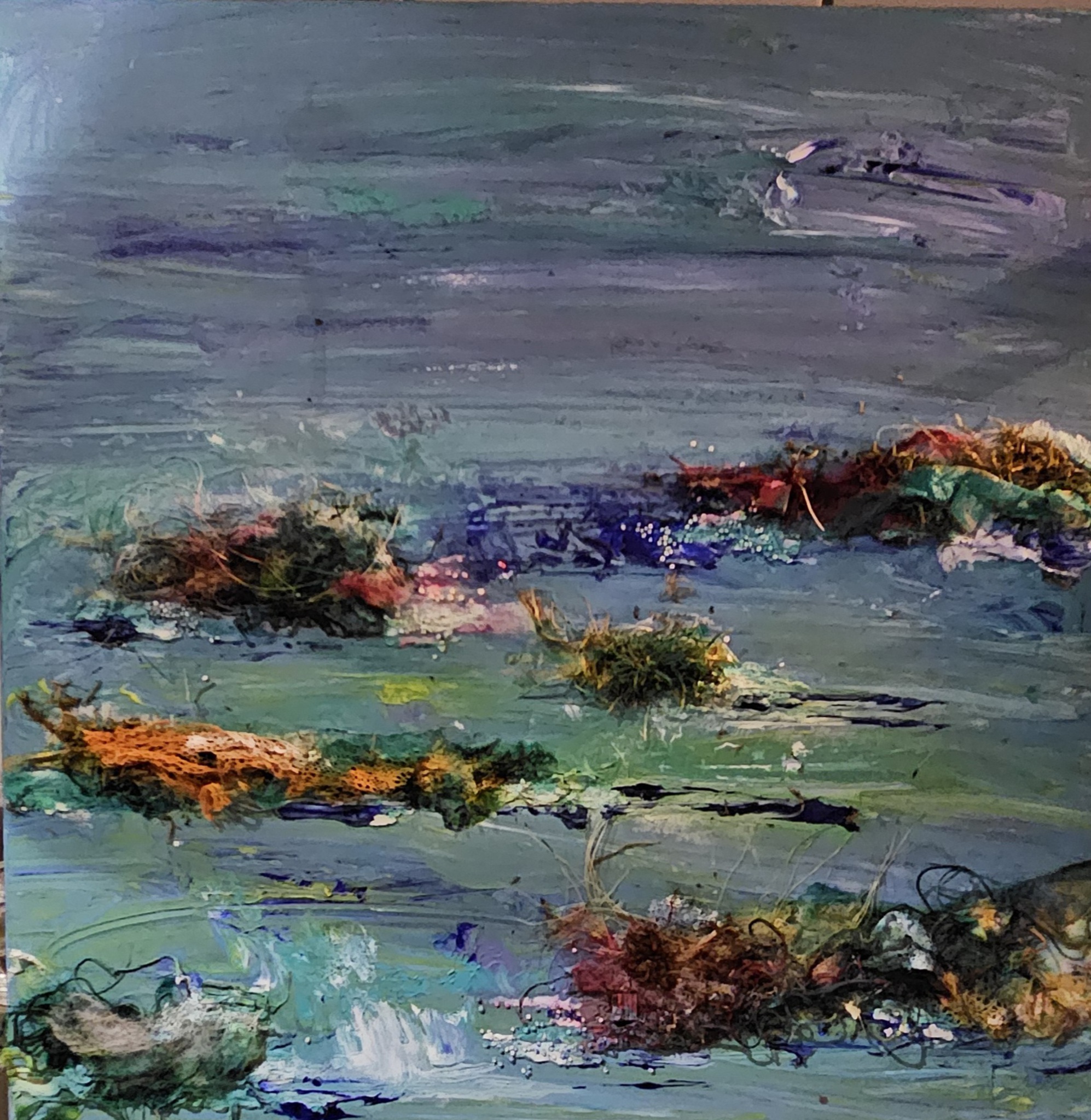 Dit werk heb ik gemaakt met aryl verf en allerlei sructuren aangebracht. Super leuk om te doen.
